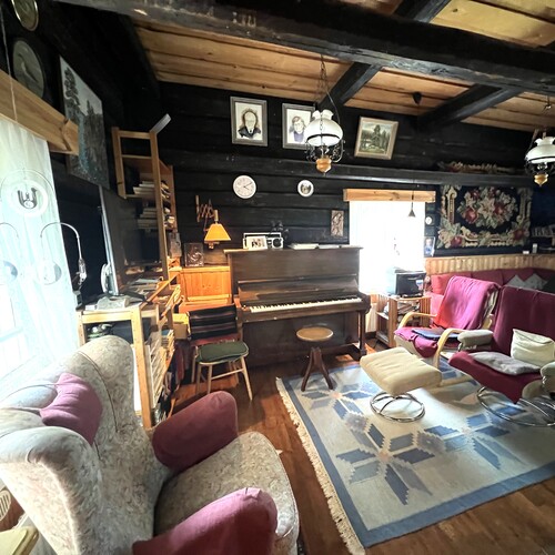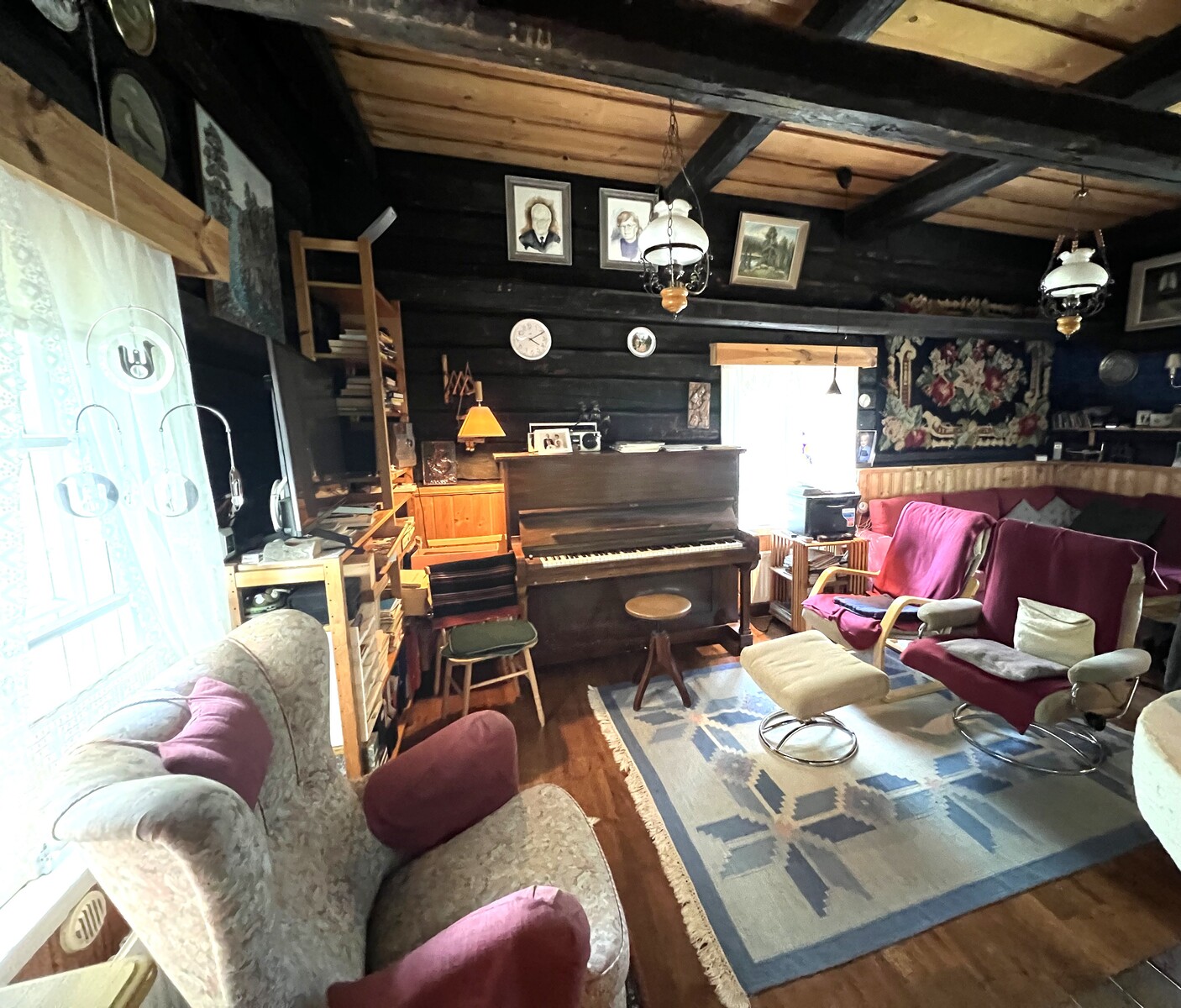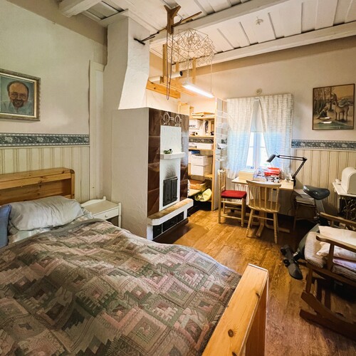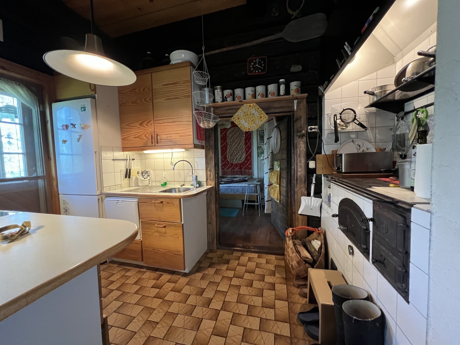 Päärakennuksen hirsirunko on osittain 1700 –1800-luvulta – yhdistelmä käsin veistettyä perinnettä ja toimivaa nykyarkea. Kolme huonetta (tupakeittiö + 2 mh), varaavat takat, lattialämmitys, puuhella/leivinuuni ja lasitettu terassi tuovat viihtyisyyttä ja lämpöä vuoden jokaisena päivänä. Kompostoiva wc toimii ekologisesti ja käytännöllisesti.