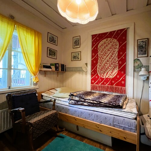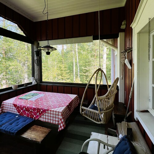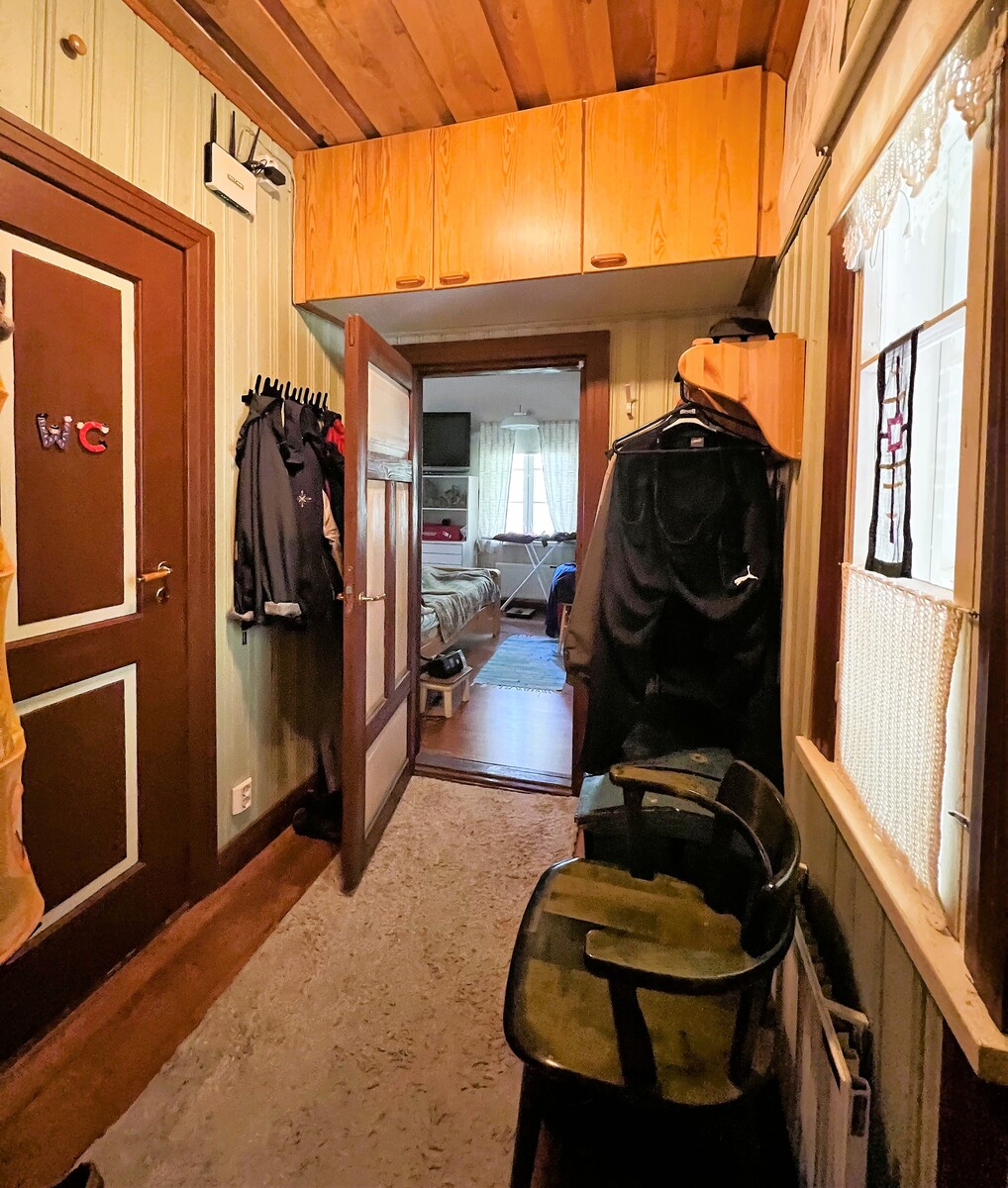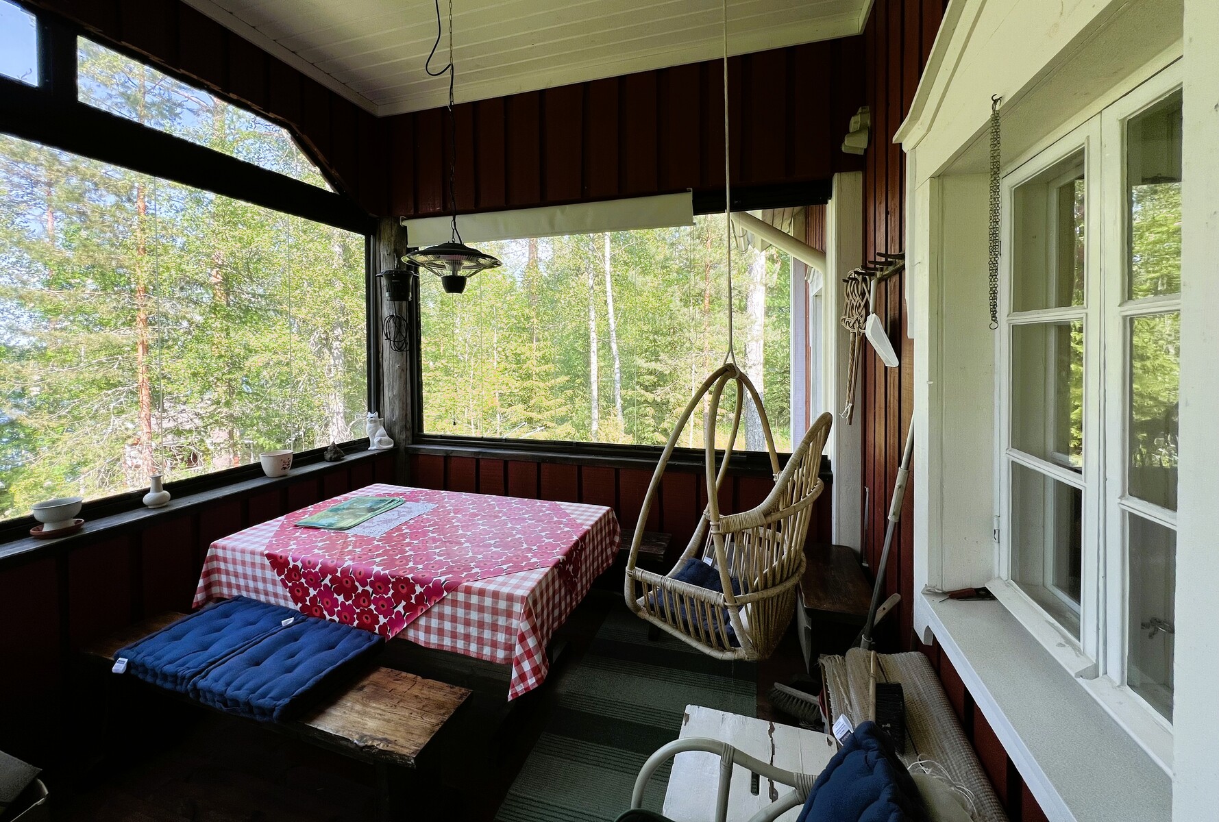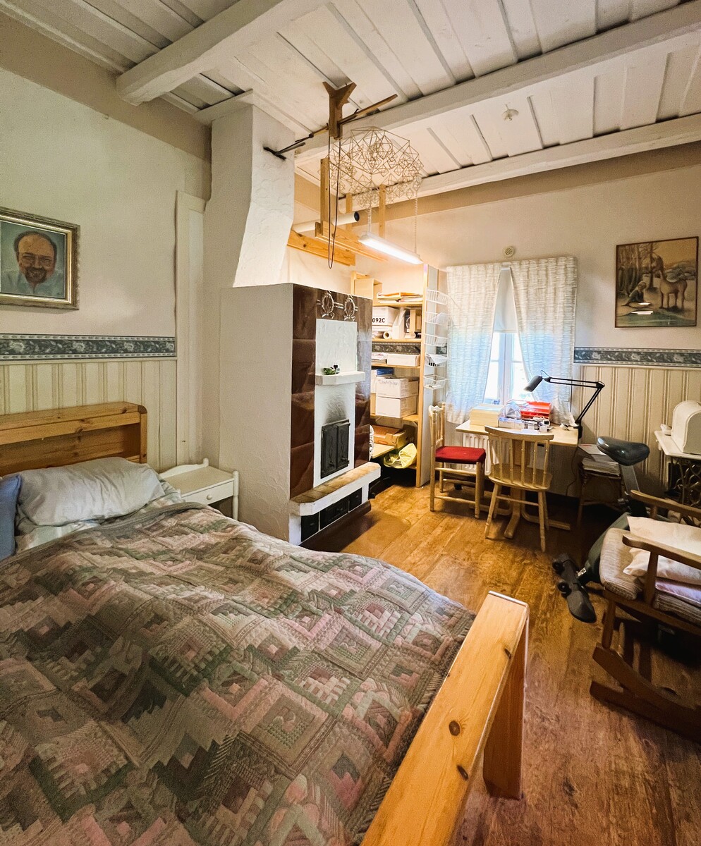 Päärakennuksen hirsirunko on osittain 1700 –1800-luvulta – yhdistelmä käsin veistettyä perinnettä ja toimivaa nykyarkea. Kolme huonetta (tupakeittiö + 2 mh), varaavat takat, lattialämmitys, puuhella/leivinuuni ja lasitettu terassi tuovat viihtyisyyttä ja lämpöä vuoden jokaisena päivänä. Kompostoiva wc toimii ekologisesti ja käytännöllisesti.