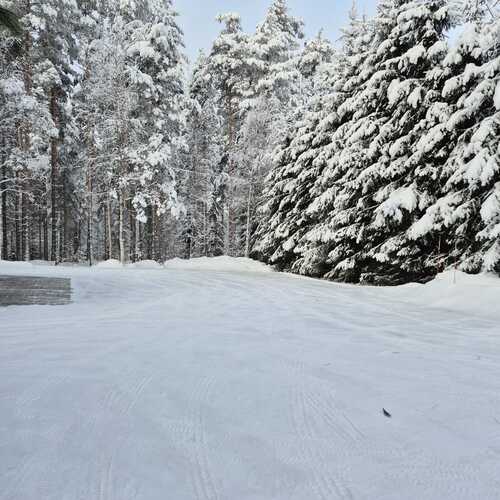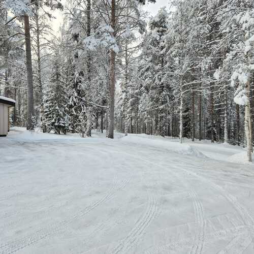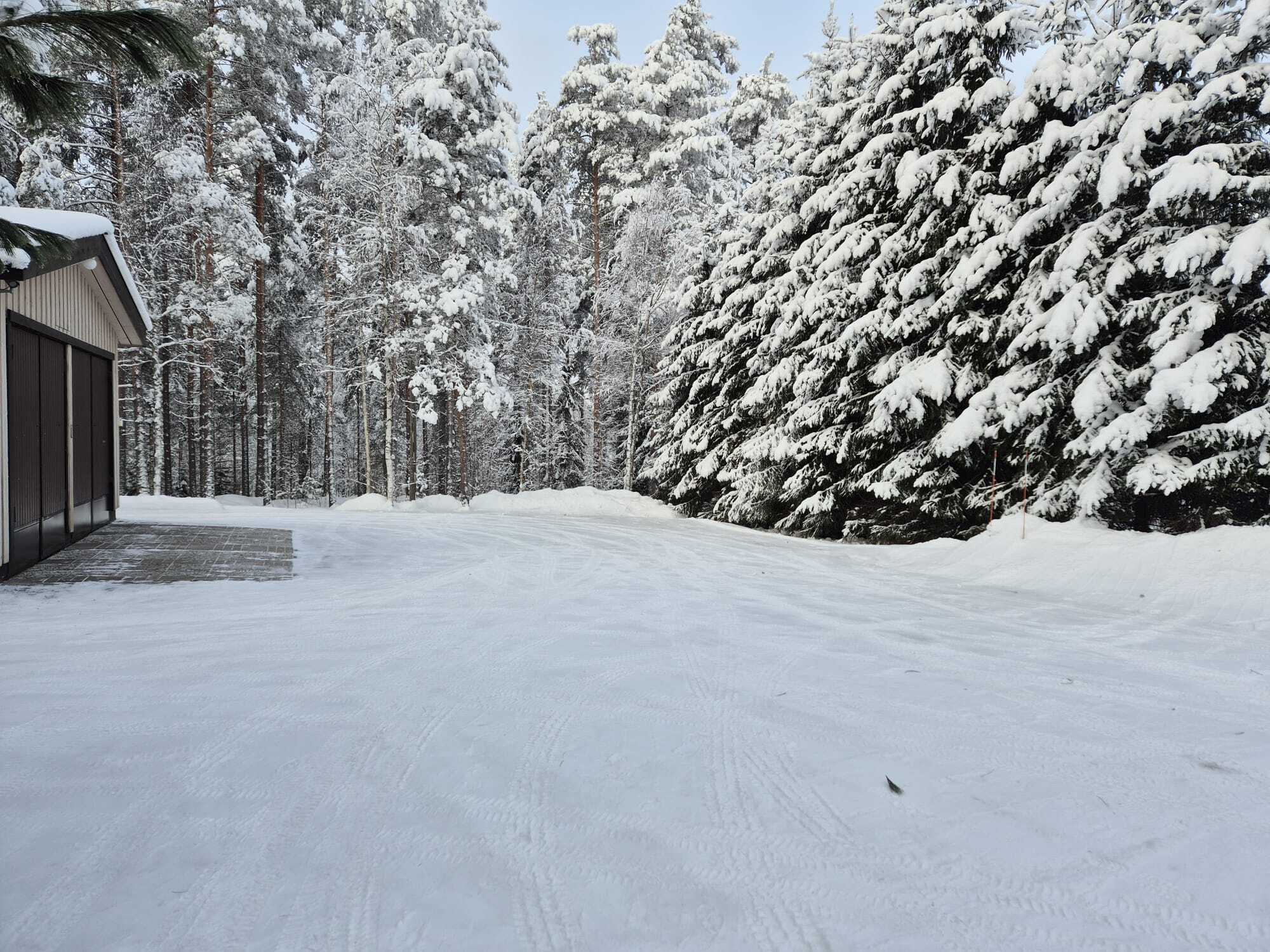 1 886 m²:n tontti on tasamaata ja helppokulkuinen. Autotallin edessä on runsaasti parkkitilaa ja pihasta avautuu näkymä rauhalliseen metsään, johon tontti rajoittuu. Takapihan takaa kulkee valaistu pururata, jota pitkin pääsee talvisin suoraan laduille. Kunnan vesijohto, viemäröinti ja sähköliittymä takaavat mukavuuden ja huolettoman asumisen.