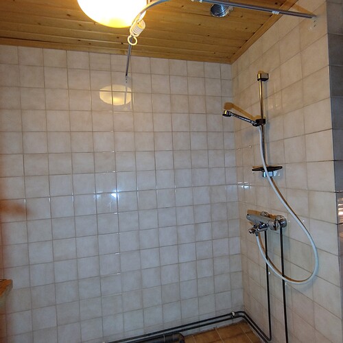 Varusteet: suihku, suihkuseinä, allaskaappi, pesukoneliitäntä