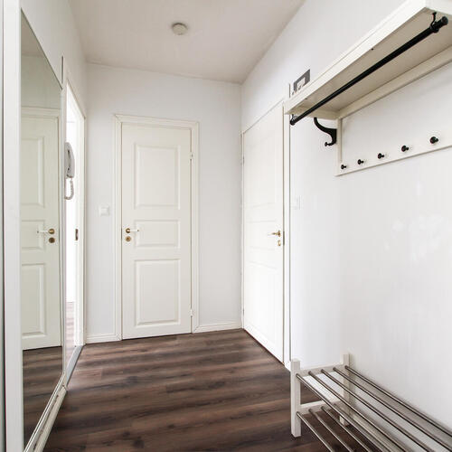 Vaatehuone: Vaatehuoneeseen käynti eteisestä.