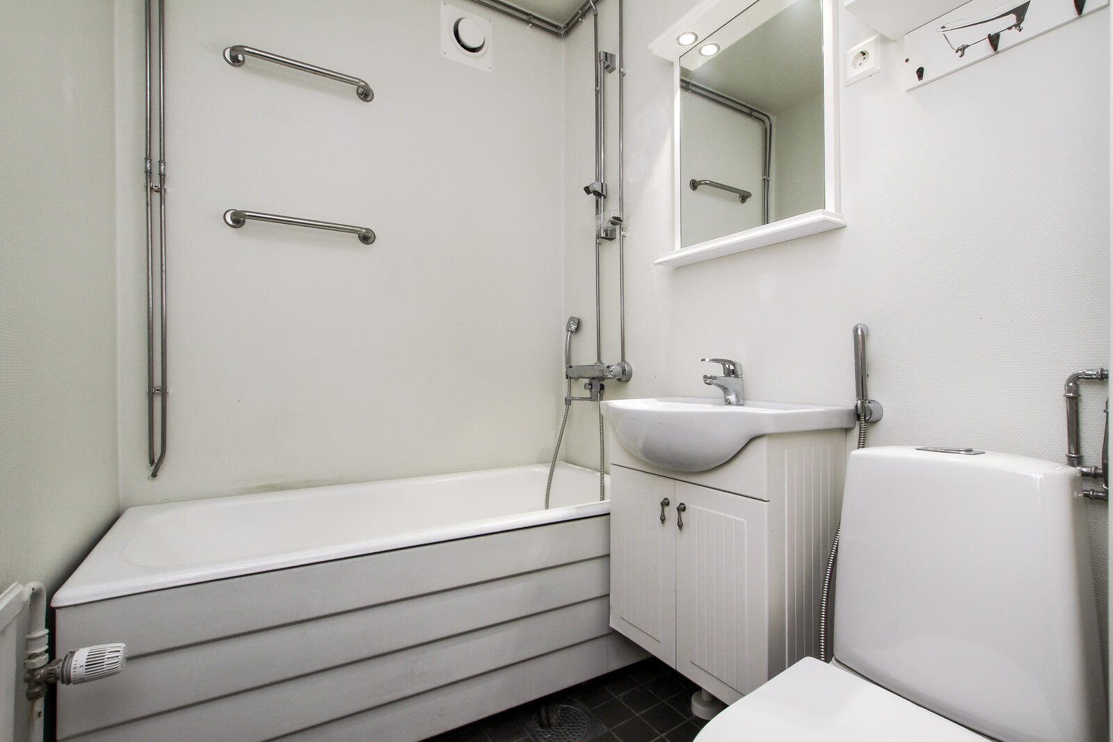 Varusteet: suihku, kylpyamme, peili