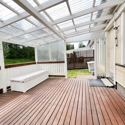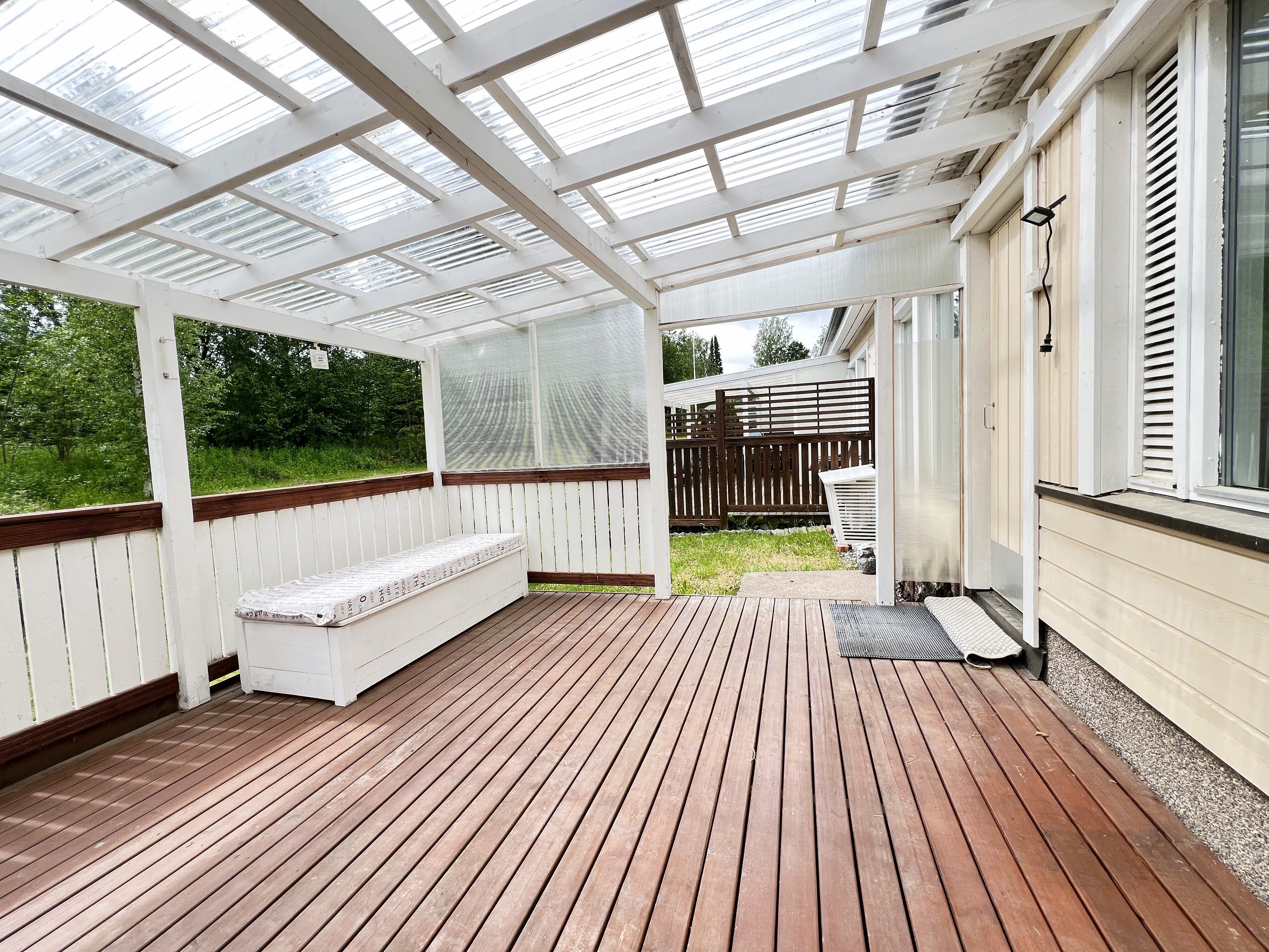 Iso katettu terassi ja läpi talon huoneisto