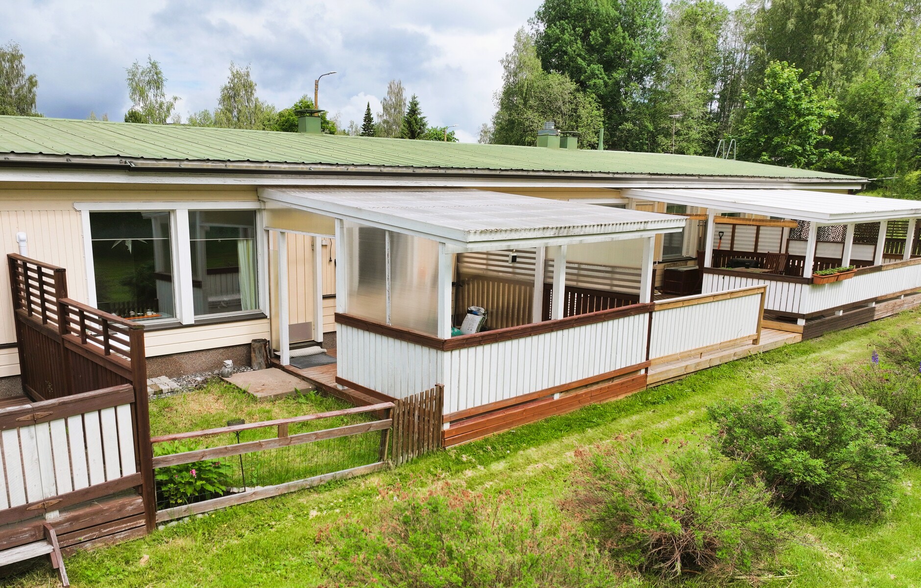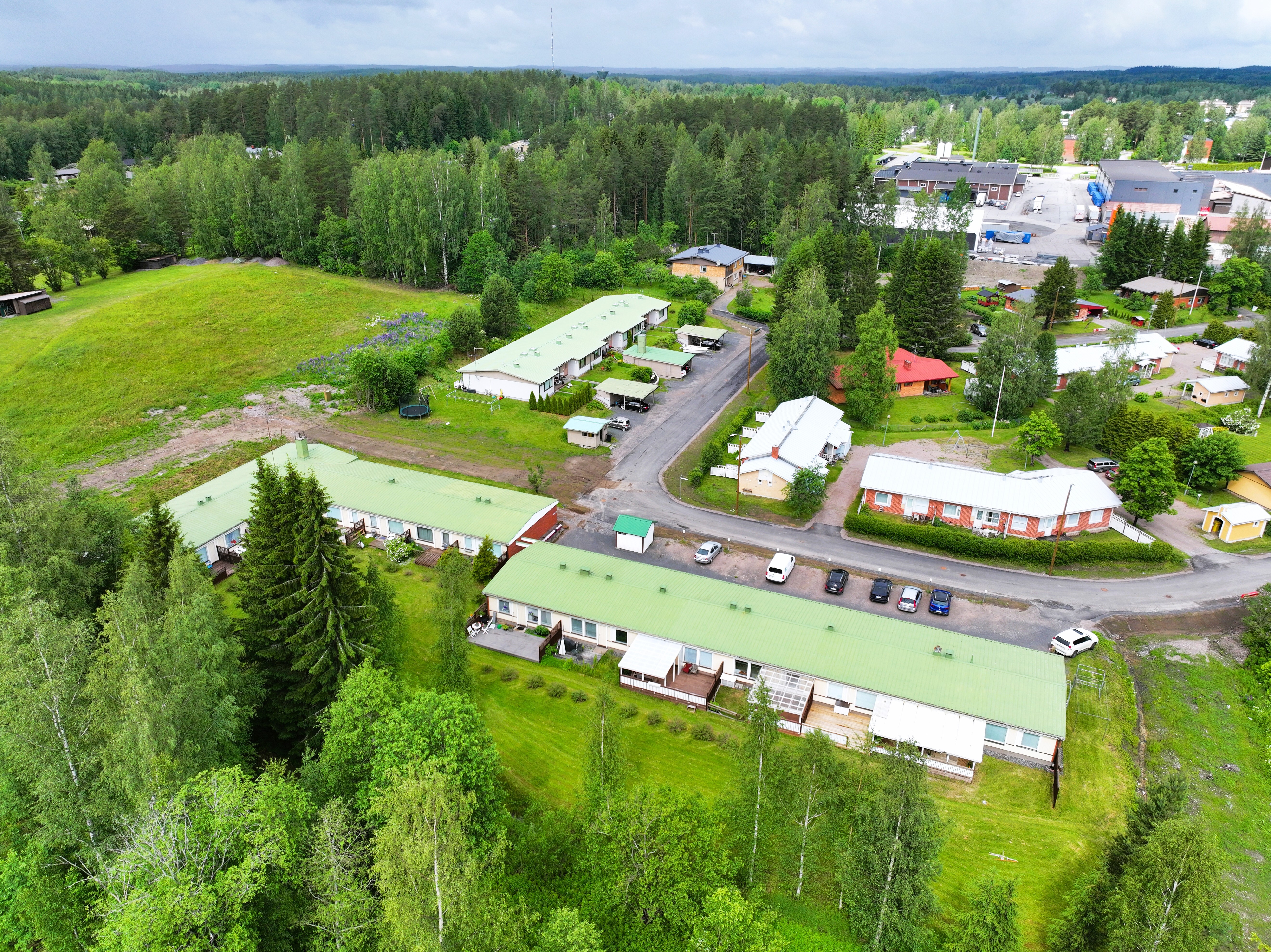 Rivitalokolmio omalla saunalla ja isolla terassilla – Maalämpötalo Mäntyharjussa
