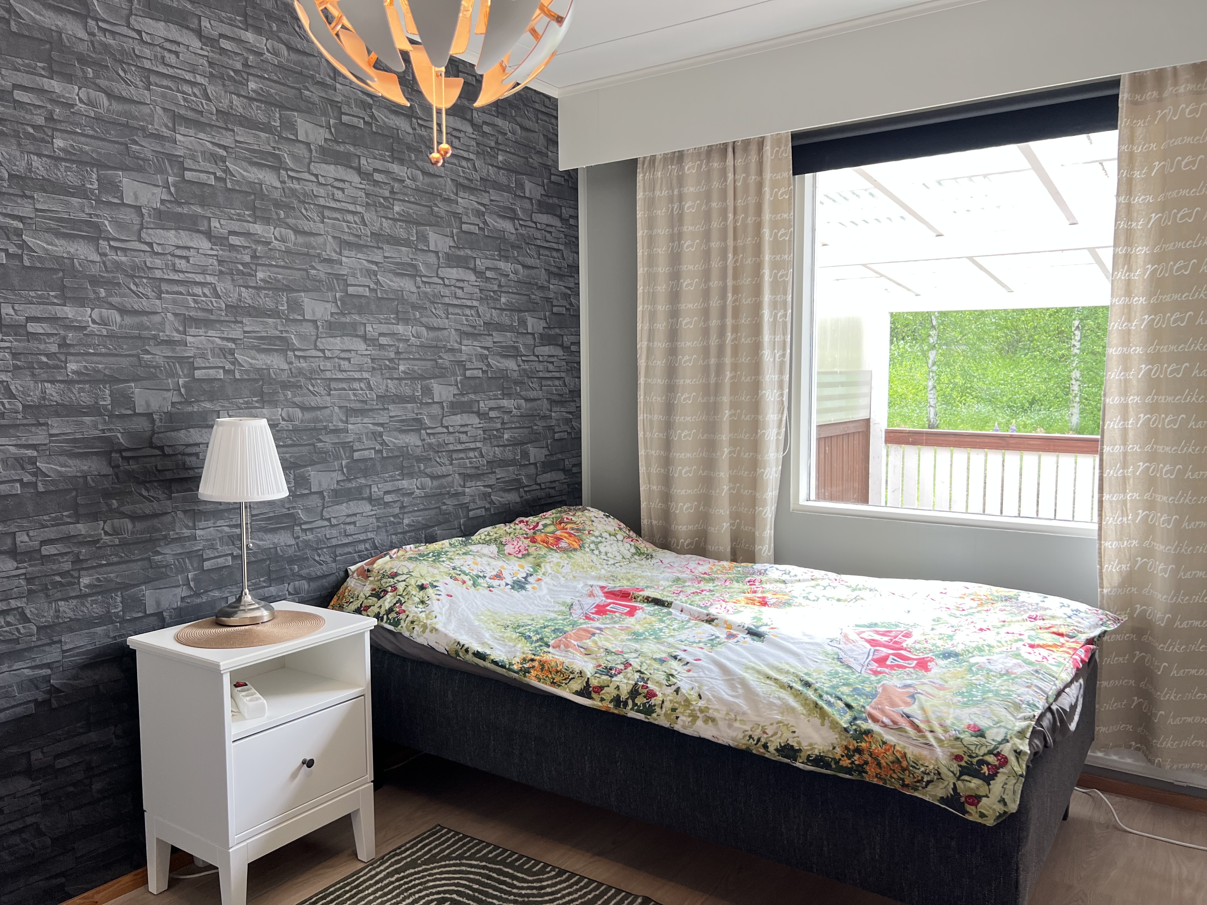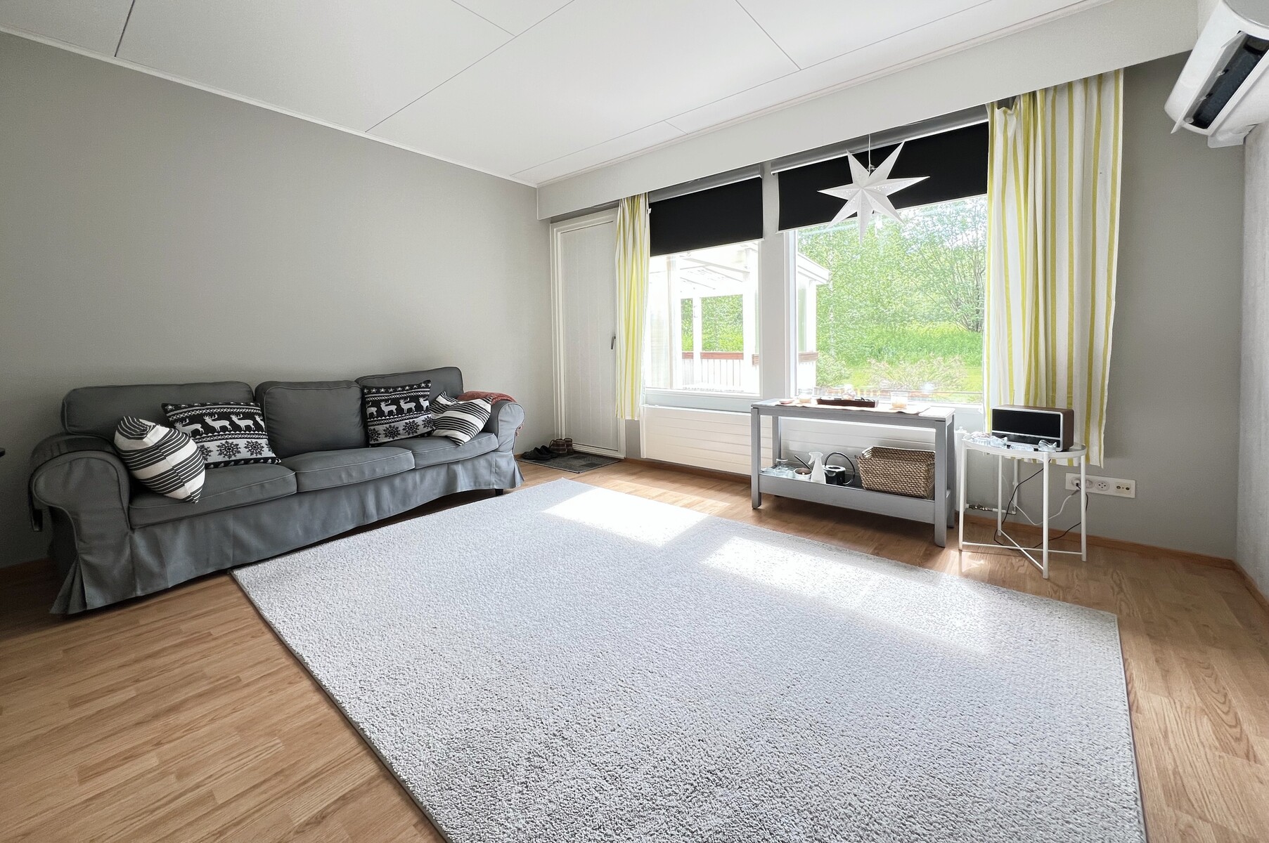 Asunnon avoin pohjaratkaisu ja huoneiston läpi kulkeva valo tekevät kokonaisuudesta kodikkaan ja toimivan. Olohuoneesta avautuu suojaisa ja tilava katettu terassi, joka kutsuu nauttimaan aamukahvista tai illan rauhasta ulkotilassa keväästä pitkälle syksyyn. Terassi on toteutettu 2011, ja se on selkeästi yksi tämän kodin kruunuista.