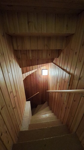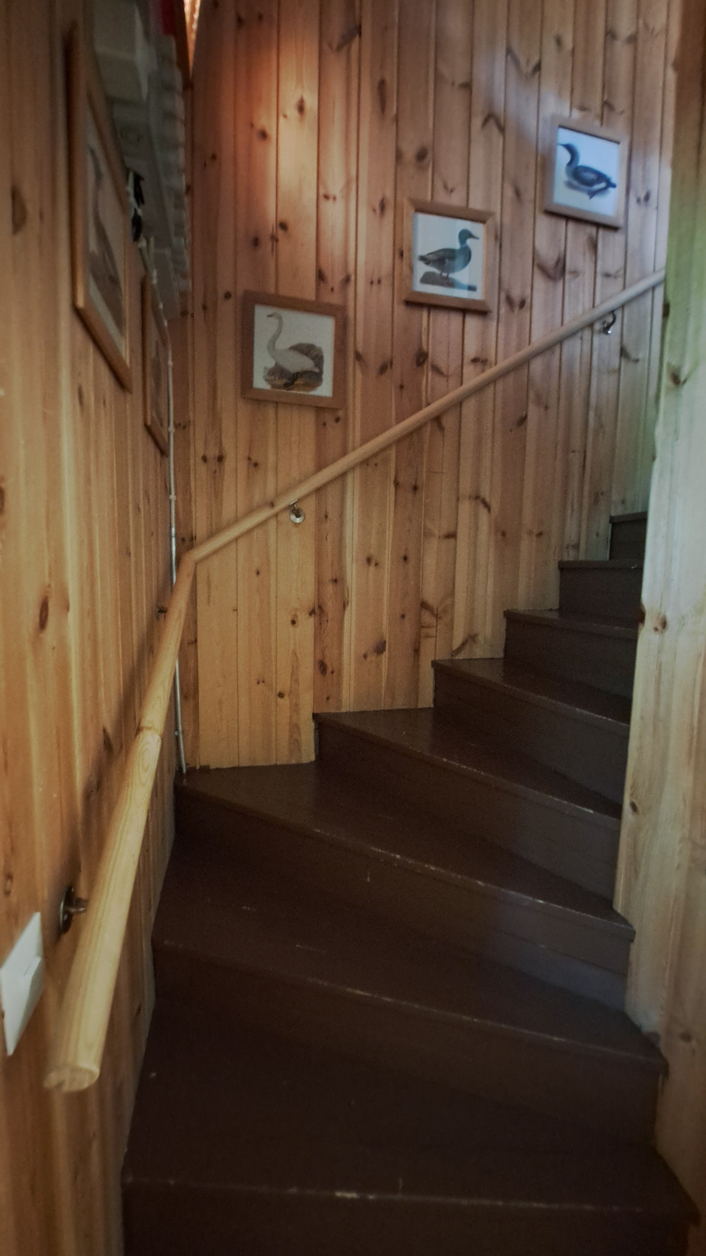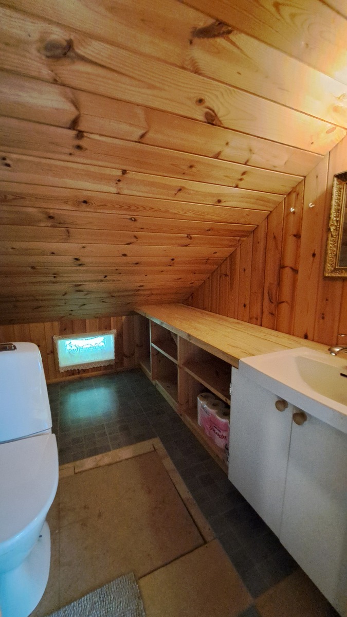Aula: Yläkerrassa viistolla sisäkatolla oleva aulatila, josta käynti yläkerran makuuhuoneeseen ja wc-tilaan.