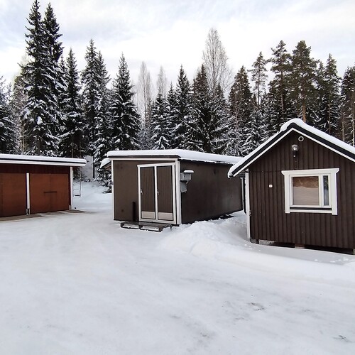 Tämä mökki tarjoaa loistavan mahdollisuuden omaan rauhaan luonnon keskellä – joko vapaa-ajan käyttöön tai pysyväksi tukikohdaksi arkeen.