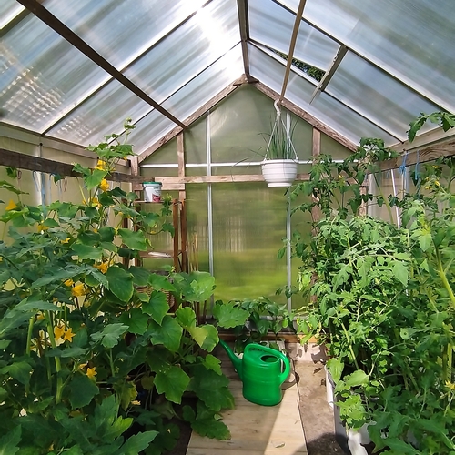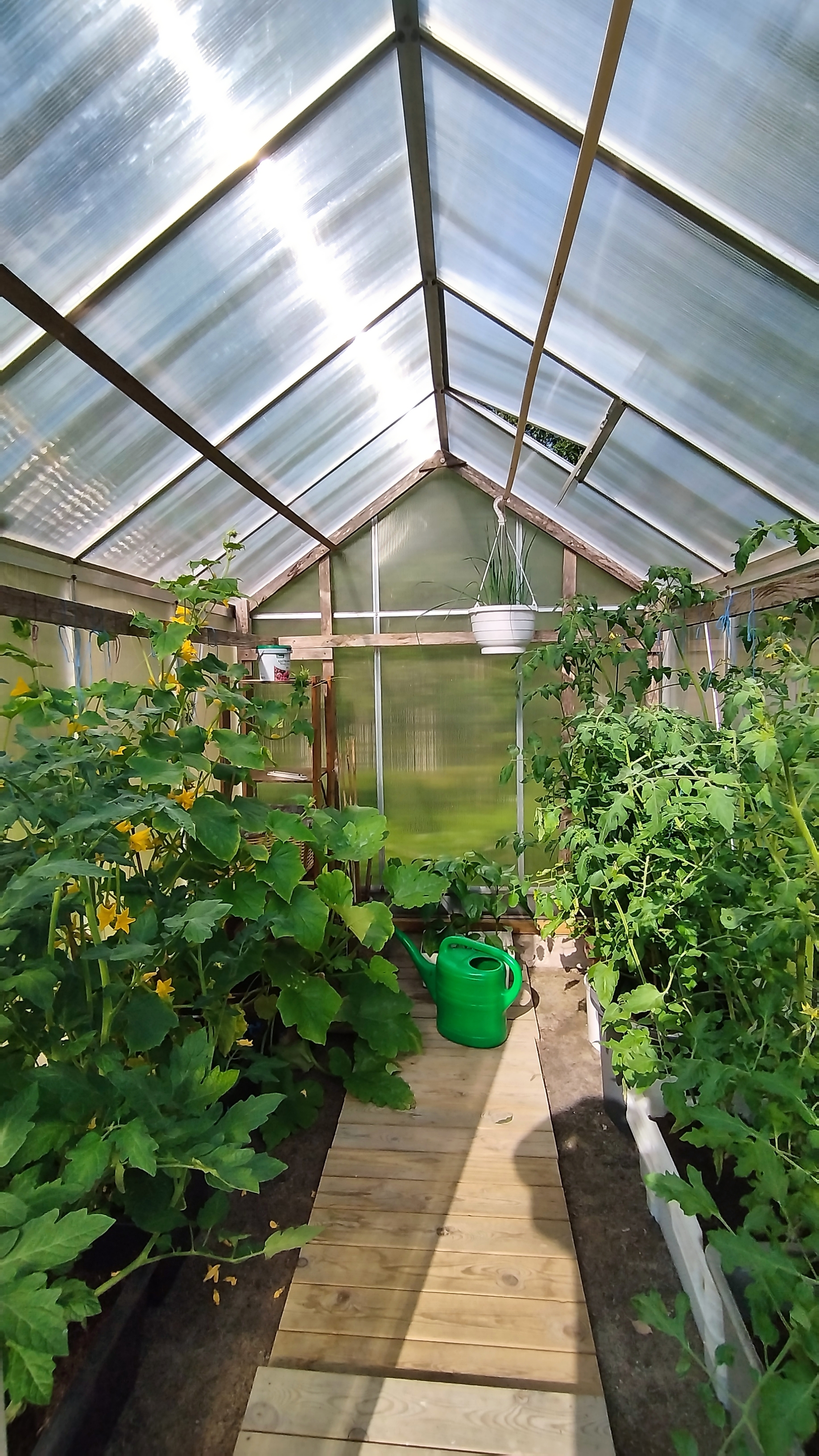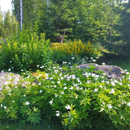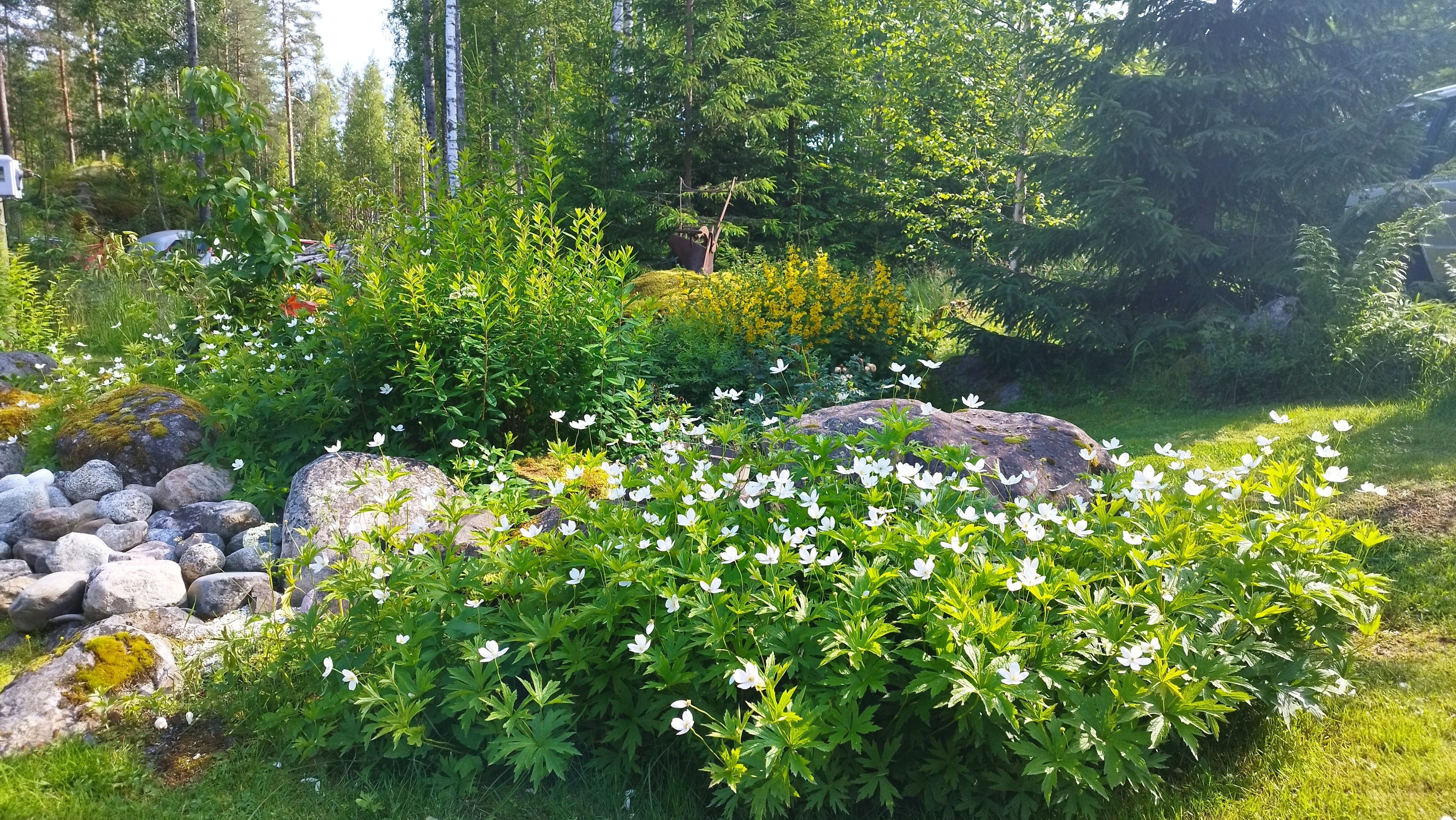 Tontilla on paljon istutuksia, kukkia ja hyötykasveja.