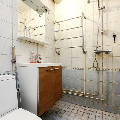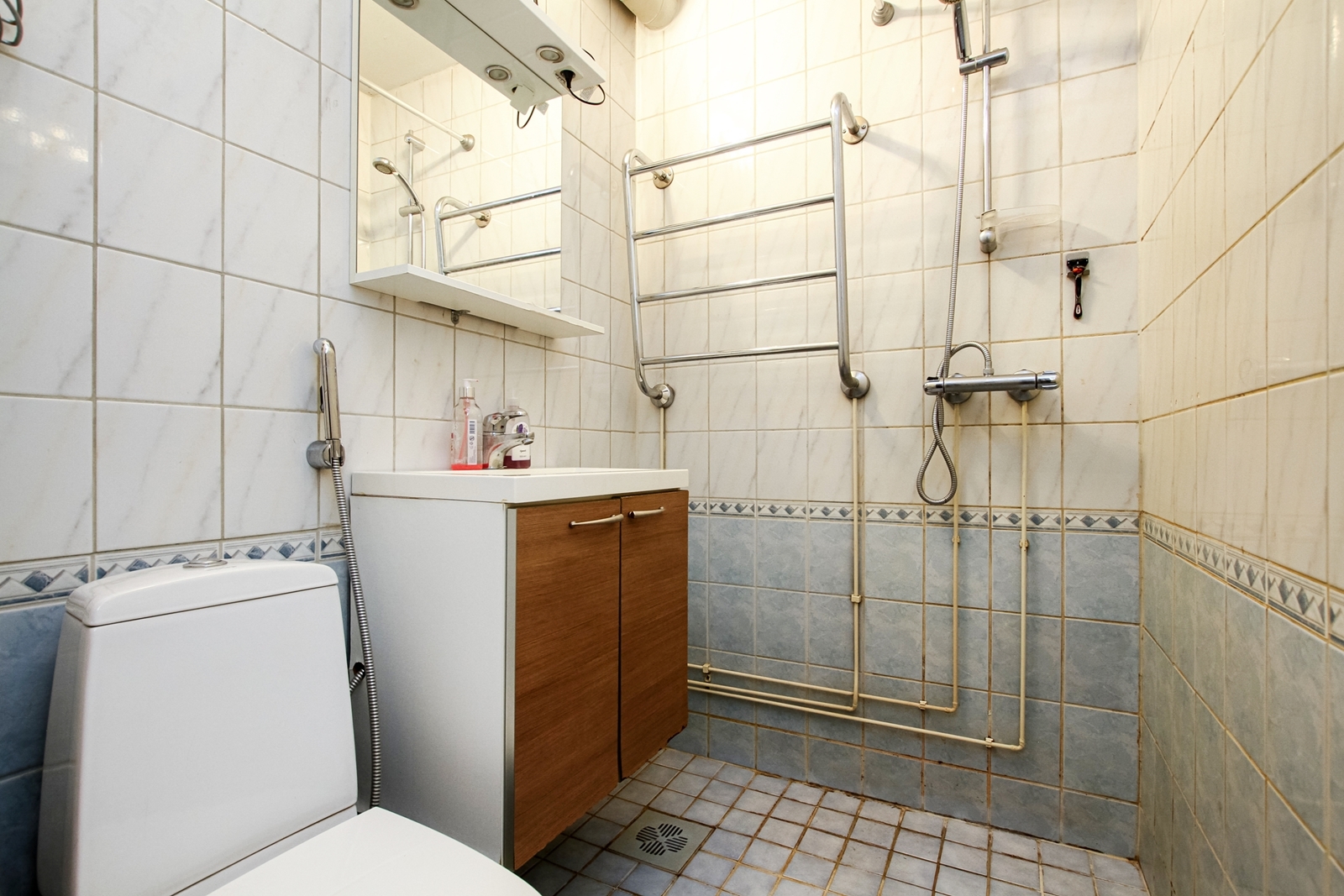 Varusteet: suihku, peili, allaskaappi, kiinteät valaisimet