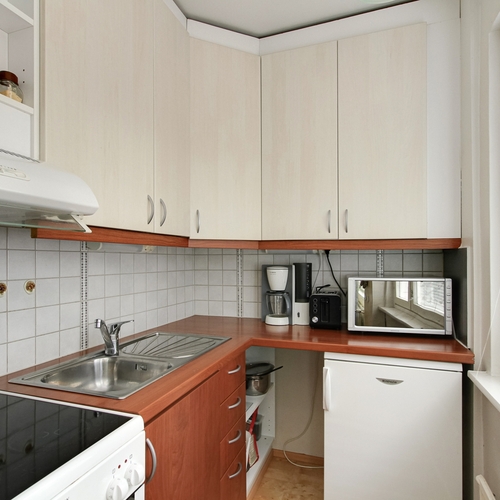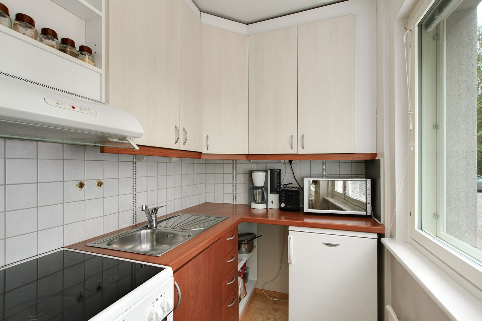 Varusteet: jääkaappi, keraaminen liesi, liesituuletin