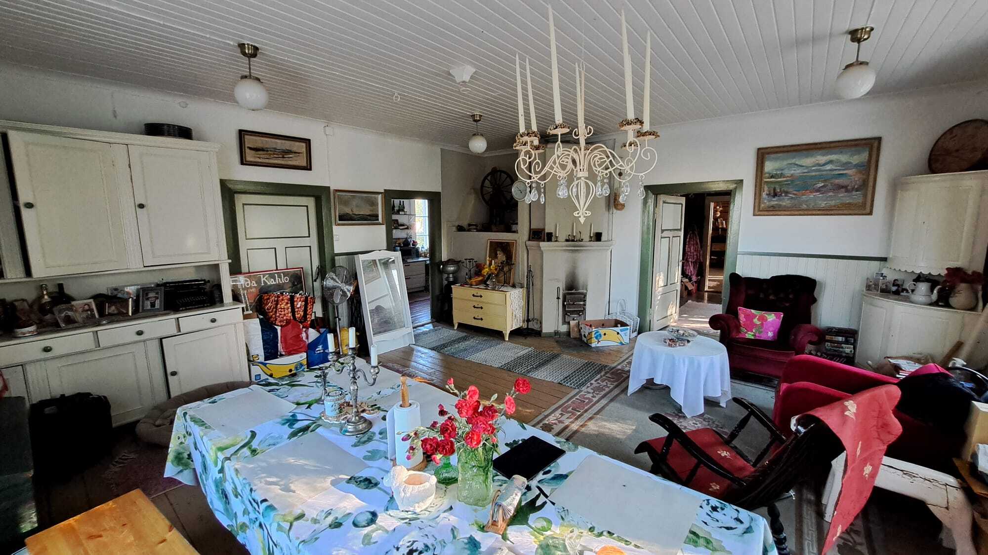 2019 talon ja saunan ulkomaalaus. Alakerran pintamaalauksia. Valokuitu asennetaan.