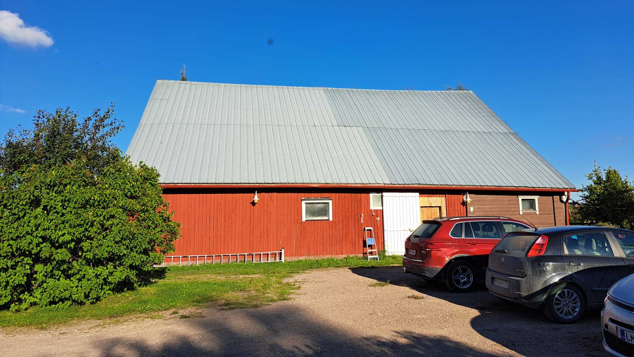 2025 aitan ulkomaalaus, tallin toisen päädyn ja pihan puolen seinän maalaus.