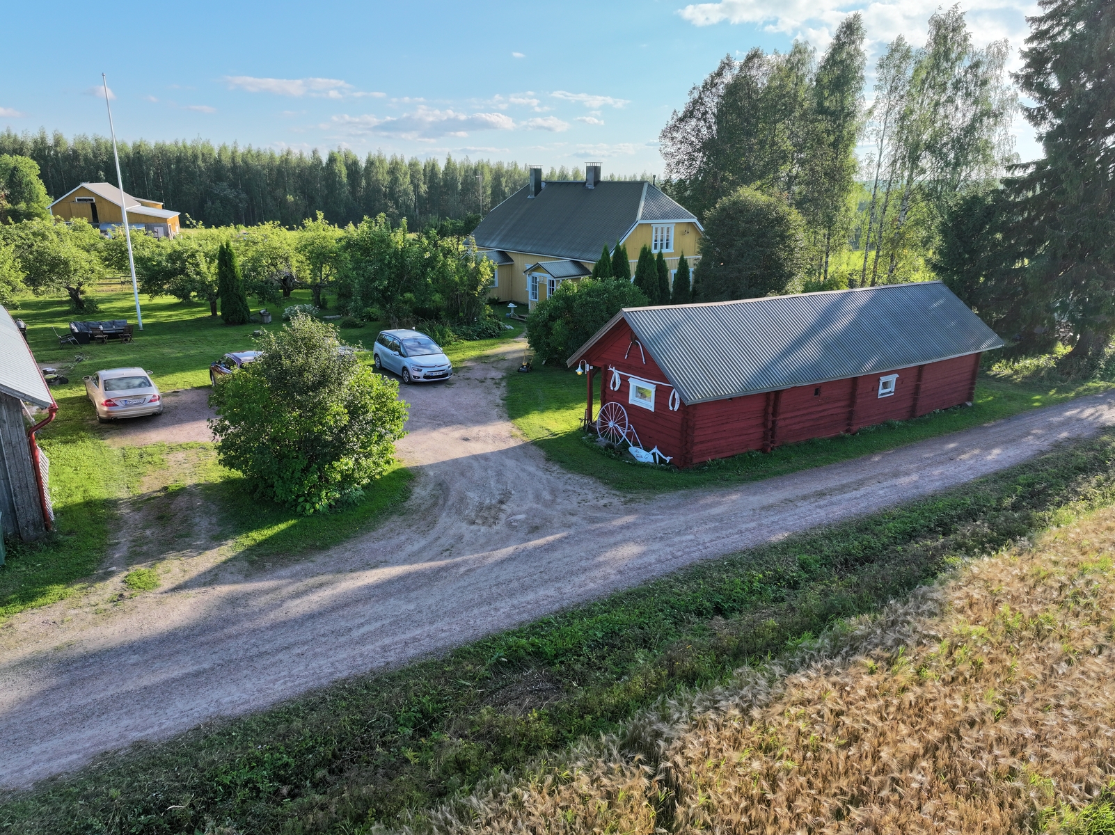 Pihapiiriin kuuluu monipuolisia rakennuksia: remontoitu kivinavetta, jossa kolme karsinaa ja modernit mukavuudet, perinteinen aittarivistö, maakellari, riihi ja pihasauna.