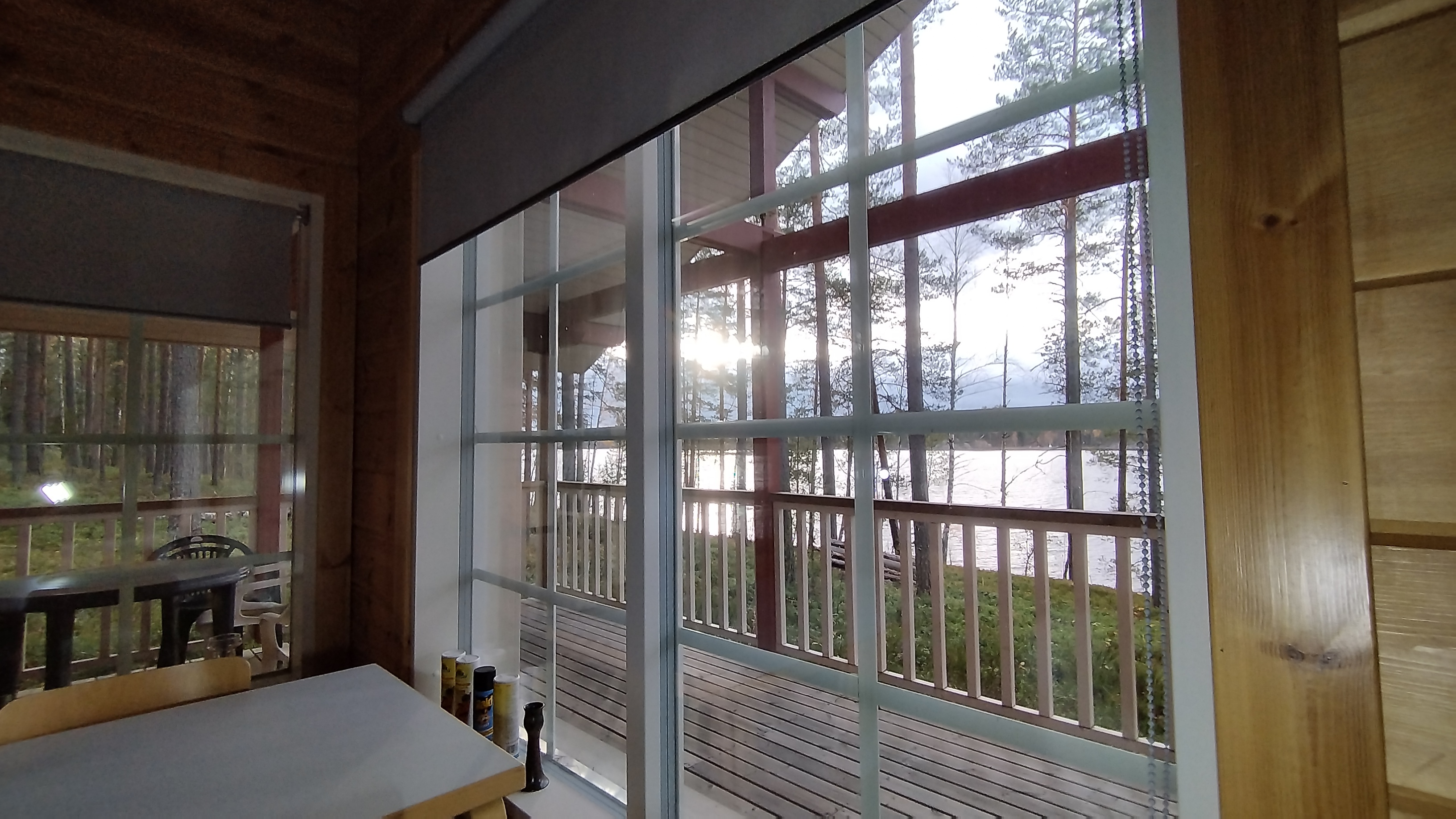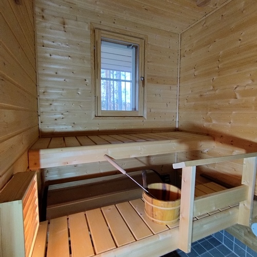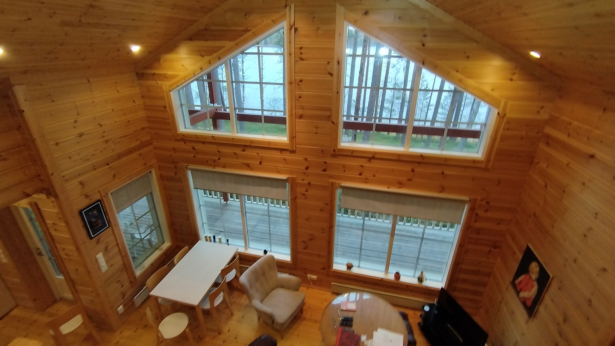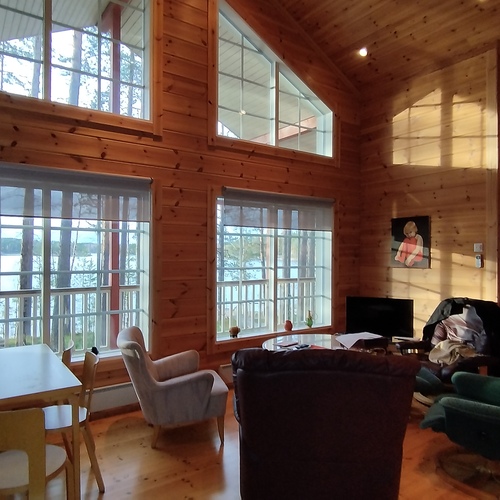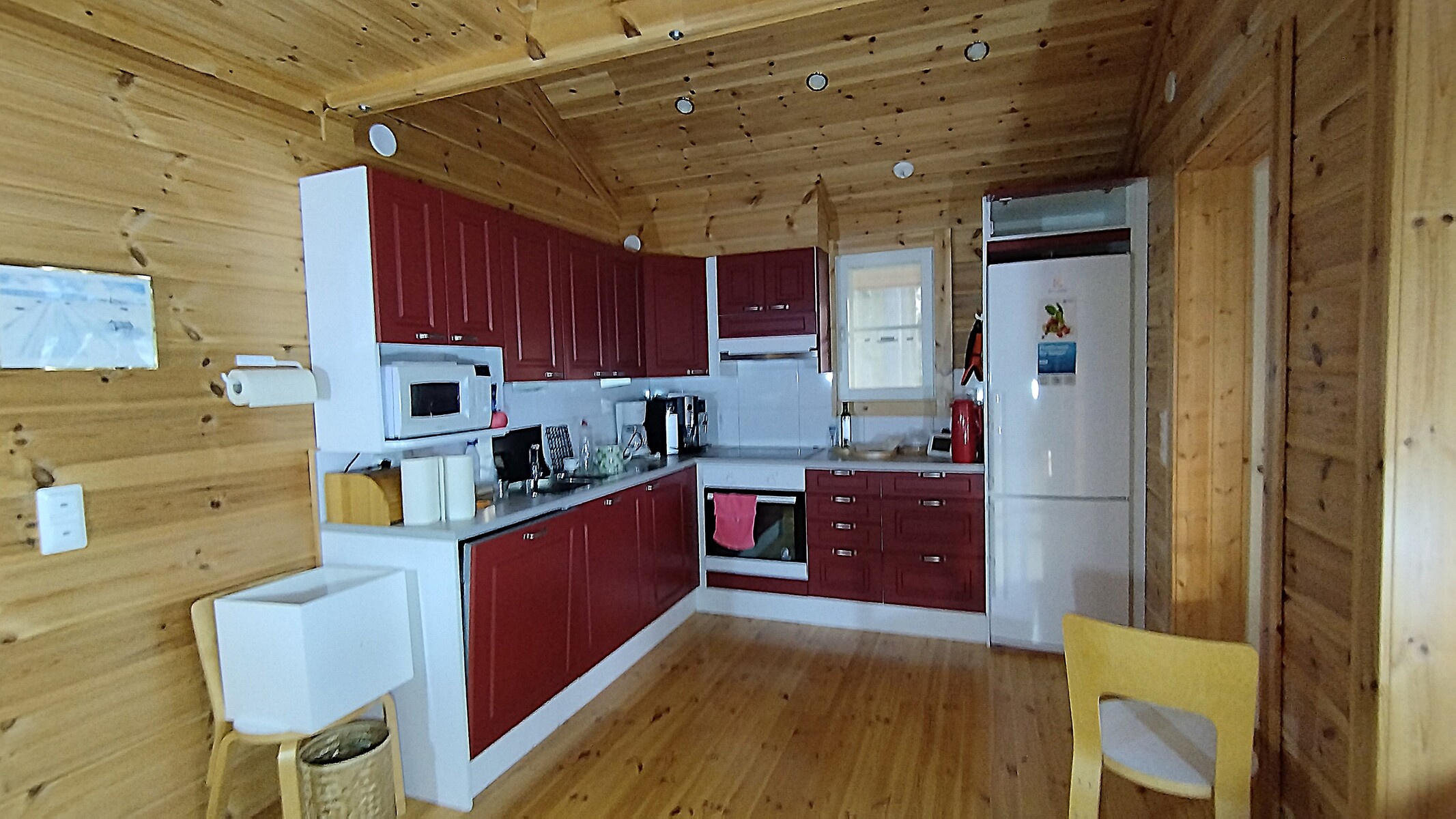 Valoisa olohuone avautuu suurin maisemaikkunoin Saimaalle, ja keittiö on varusteltu nykyaikaisesti – astianpesukone, erillisuuni, mikro ja jääkaappipakastin tekevät arjesta sujuvaa. Huvilassa on kaksi makuuhuonetta, tilava parvi sekä sauna, joka lämpiää aidolla puukiukaalla. Katettu terassi ja luonnonläheinen piha viimeistelevät idyllisen kokonaisuuden.