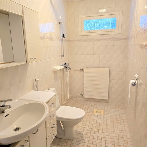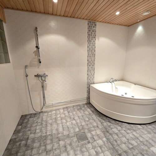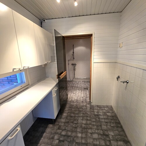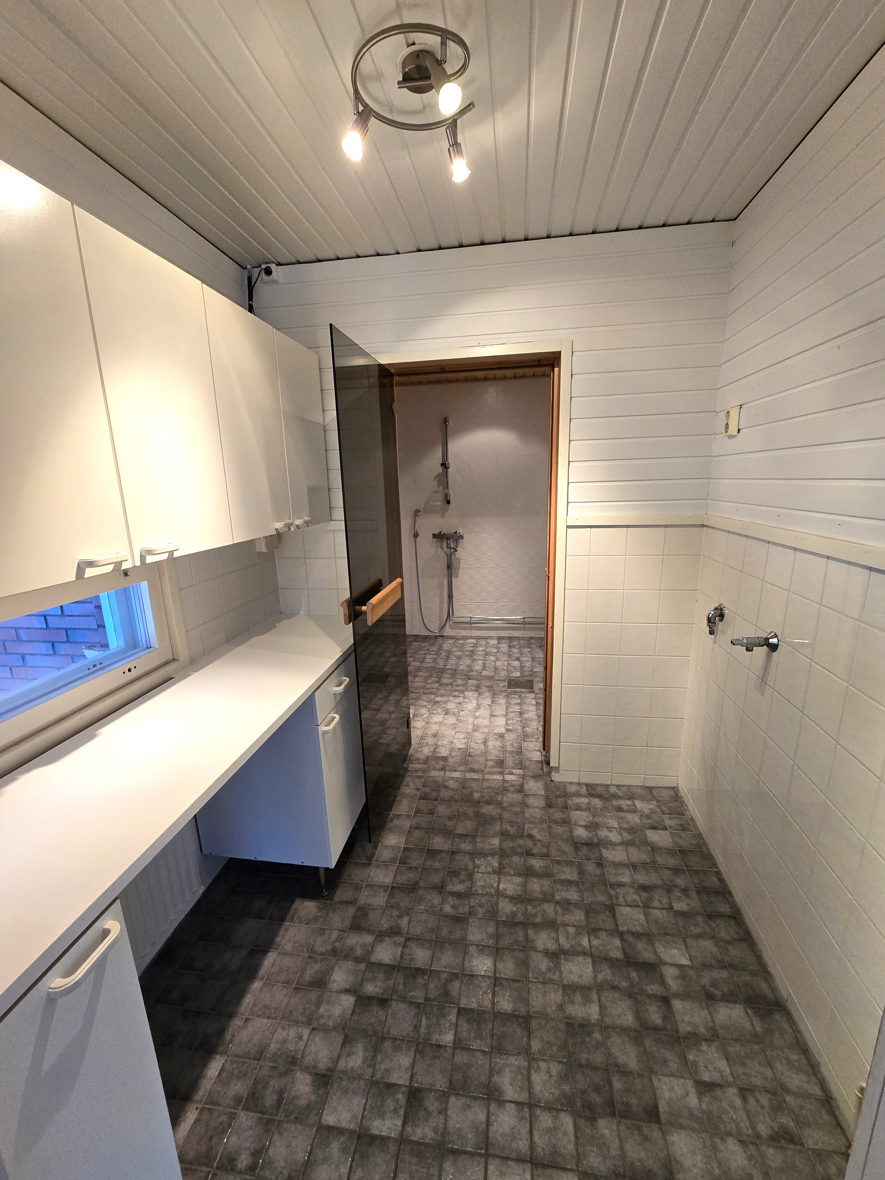Makuuhuoneita on useita, mikä mahdollistaa joustavat ratkaisut perheelle, etätyöhön tai harrastuksiin. Kaksi kylpyhuonetta sekä erilliset wc-tilat sujuvoittavat arkea, ja kodinhoitotilat on suunniteltu käytännöllisesti. Saunassa on miellyttävä tunnelma rentoutumiseen päivän päätteeksi.