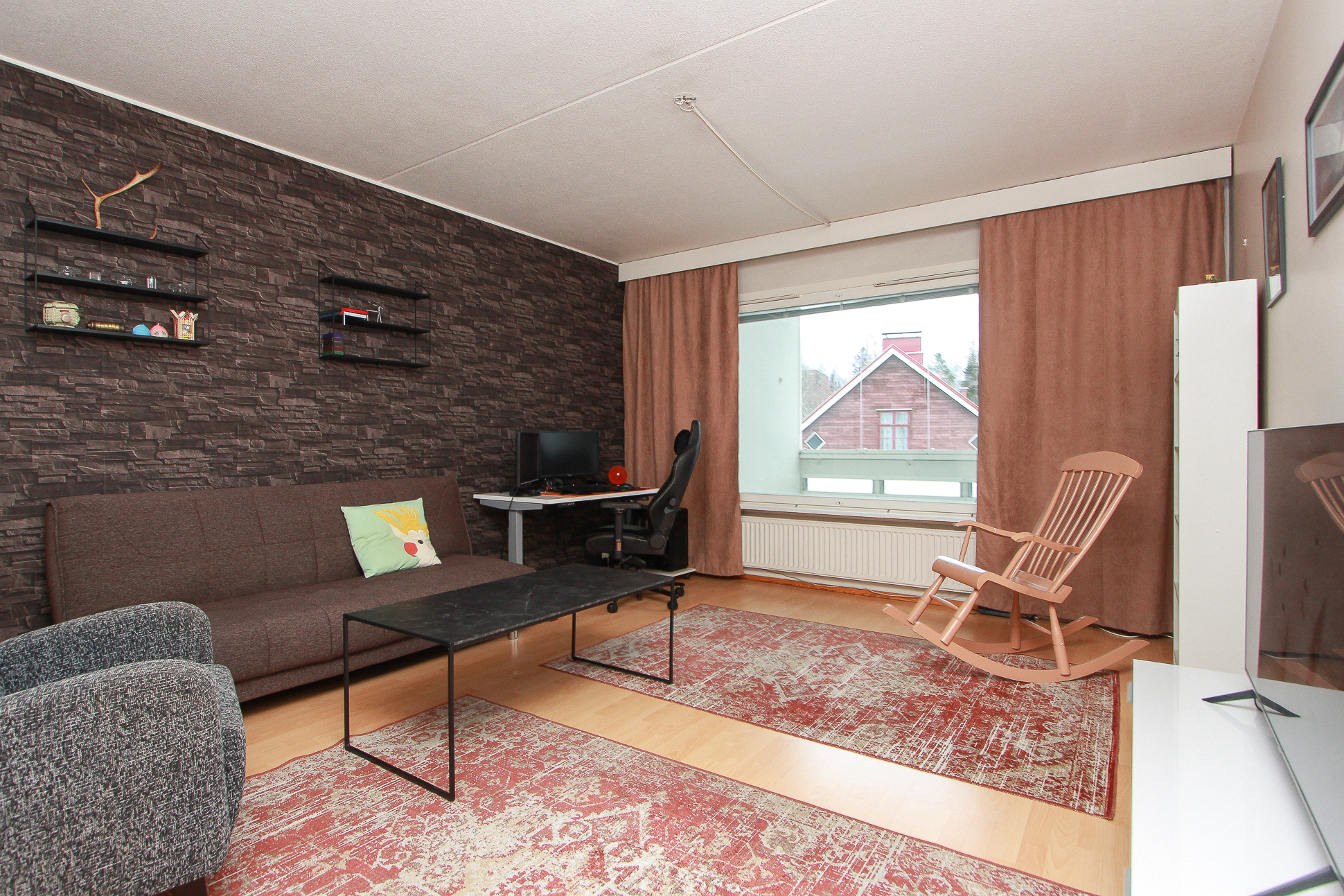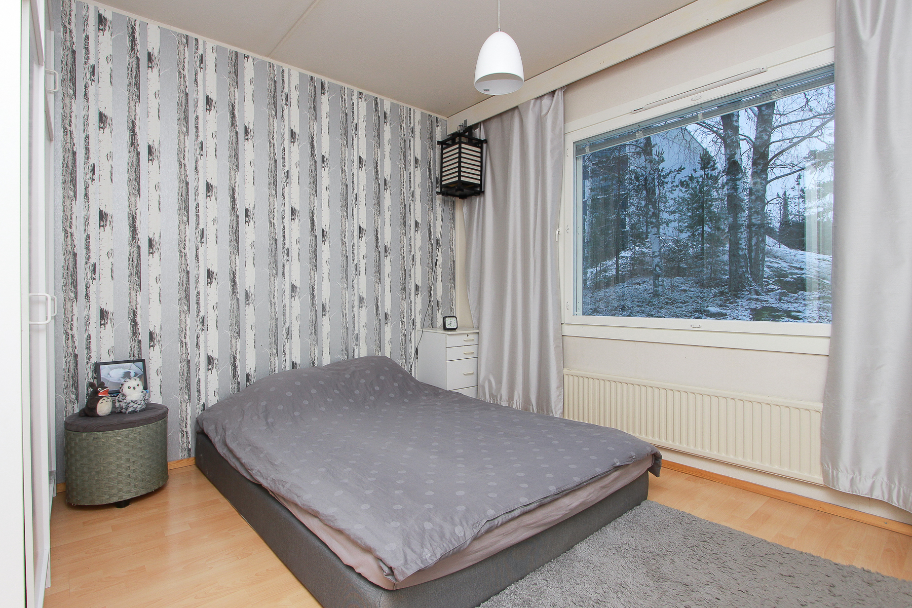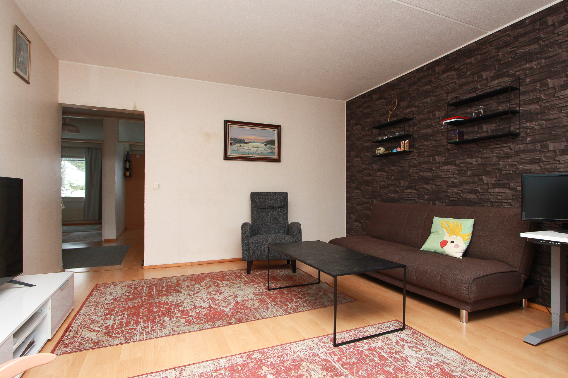 Lattia laminaattia. Seinät maalattu.