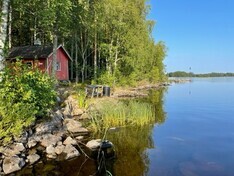 Rantaviivaa noin 40 m. Kivikkoinen/soraranta, saunan päädyssä pieni kaistale hiekkarantaa. Syvyys 2-4m. Laivaväylä menee n.200m päässä mökistä