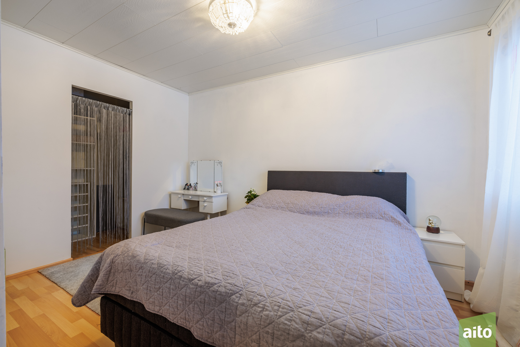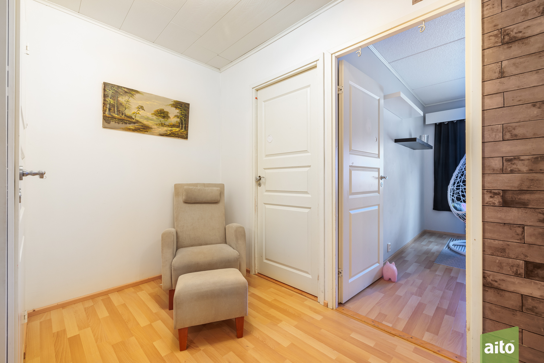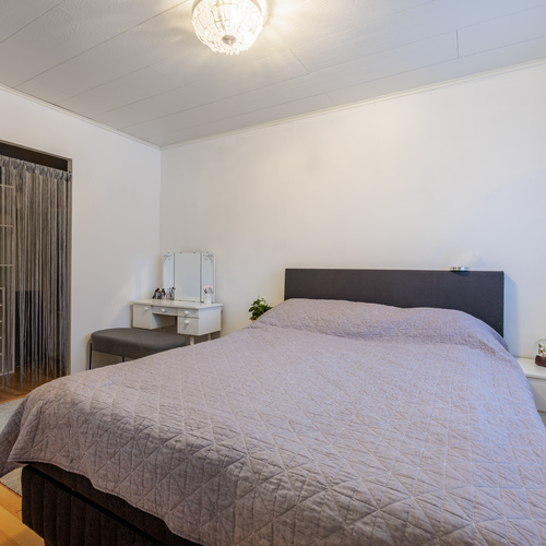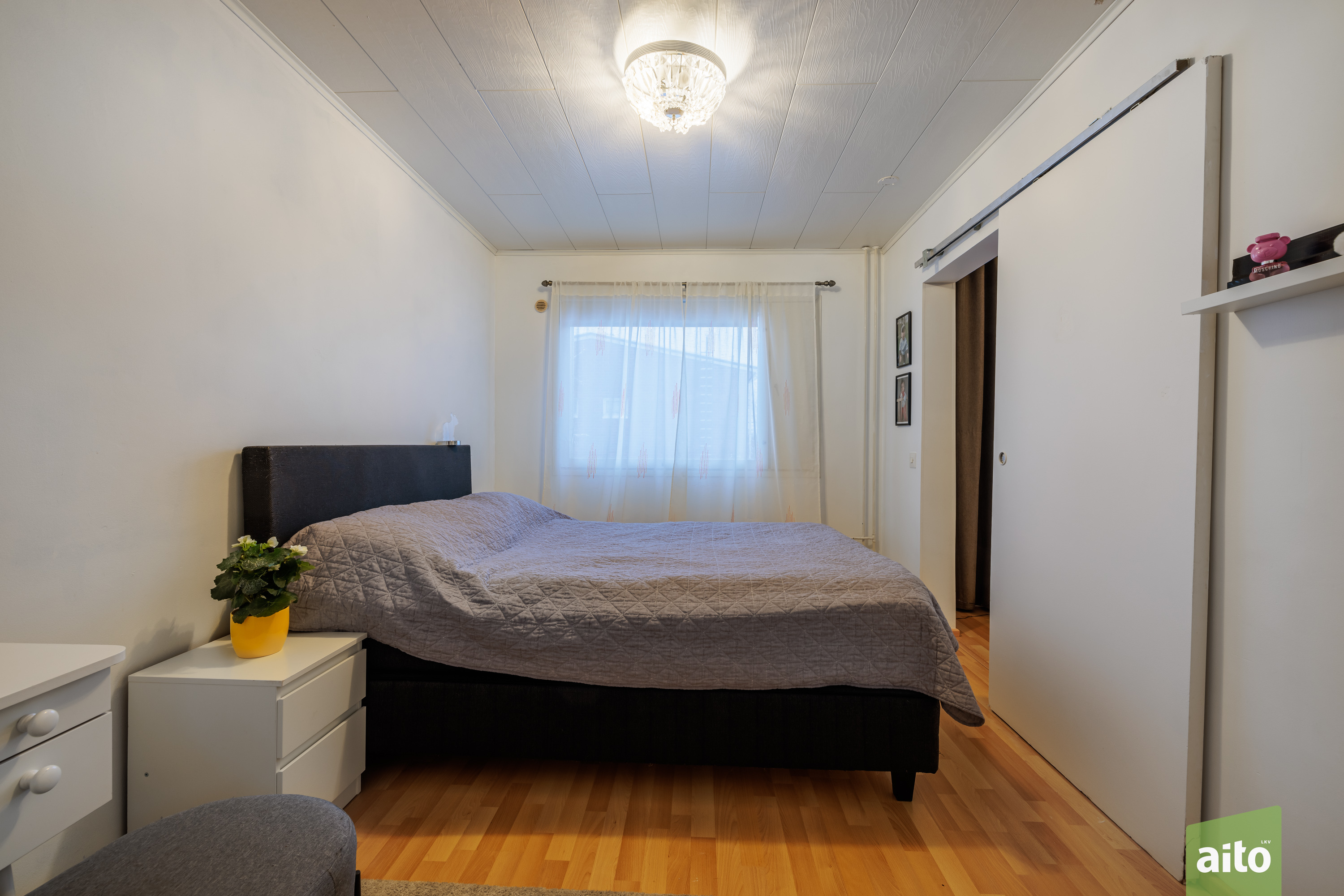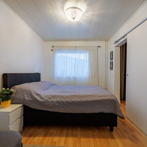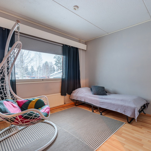Asunnossa on kolme makuuhuonetta, joissa lattiat ovat laminaattia ja seinät maalattu tai tapetoitu. Lisäksi käytännölliset säilytysratkaisut tukevat arjen toimivuutta.