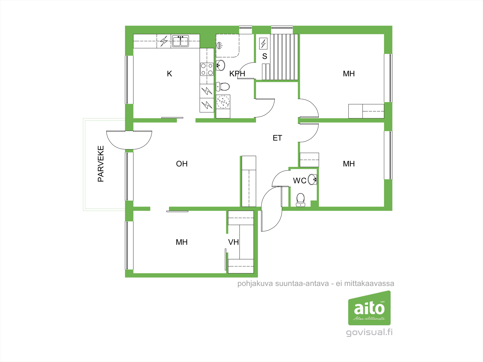 Asunnon tilat ja varustelu:
