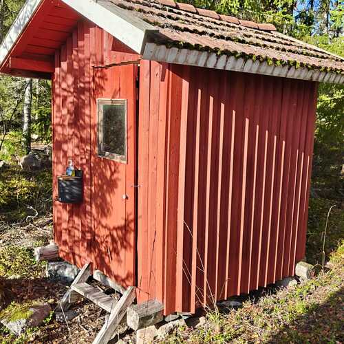 Pilariperustainen, puurunkoinen ja lautaverhottu v. 1970 rakennettu n. 15 m² talousrakennus, jossa pulpettikatto, kateaineena pelti. Tiloina aitta, liiteri ja varasto.