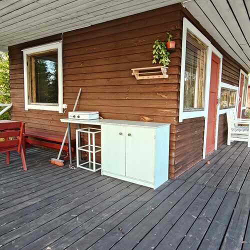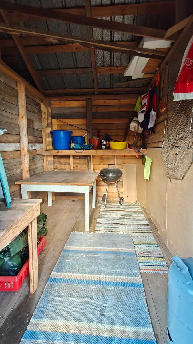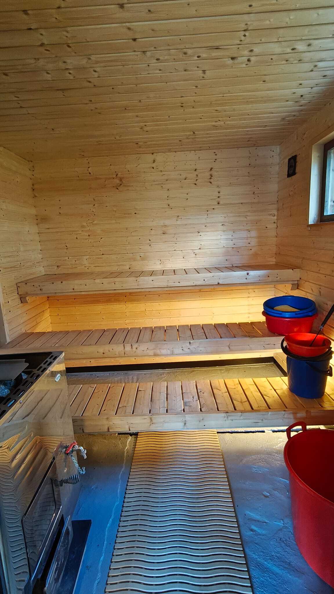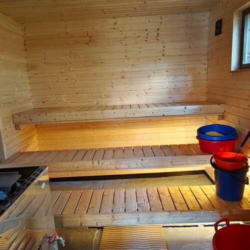 v. 2020 Saunan ja pukuhuoneen panelointi, harmaa jätevesijärjestelmän rakentaminen, ulkomaalausta (kuistirakenteet).