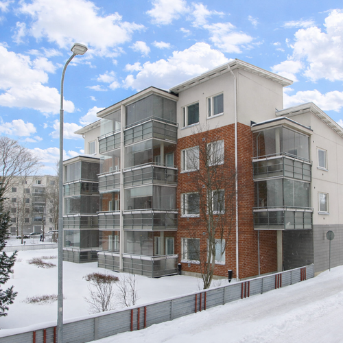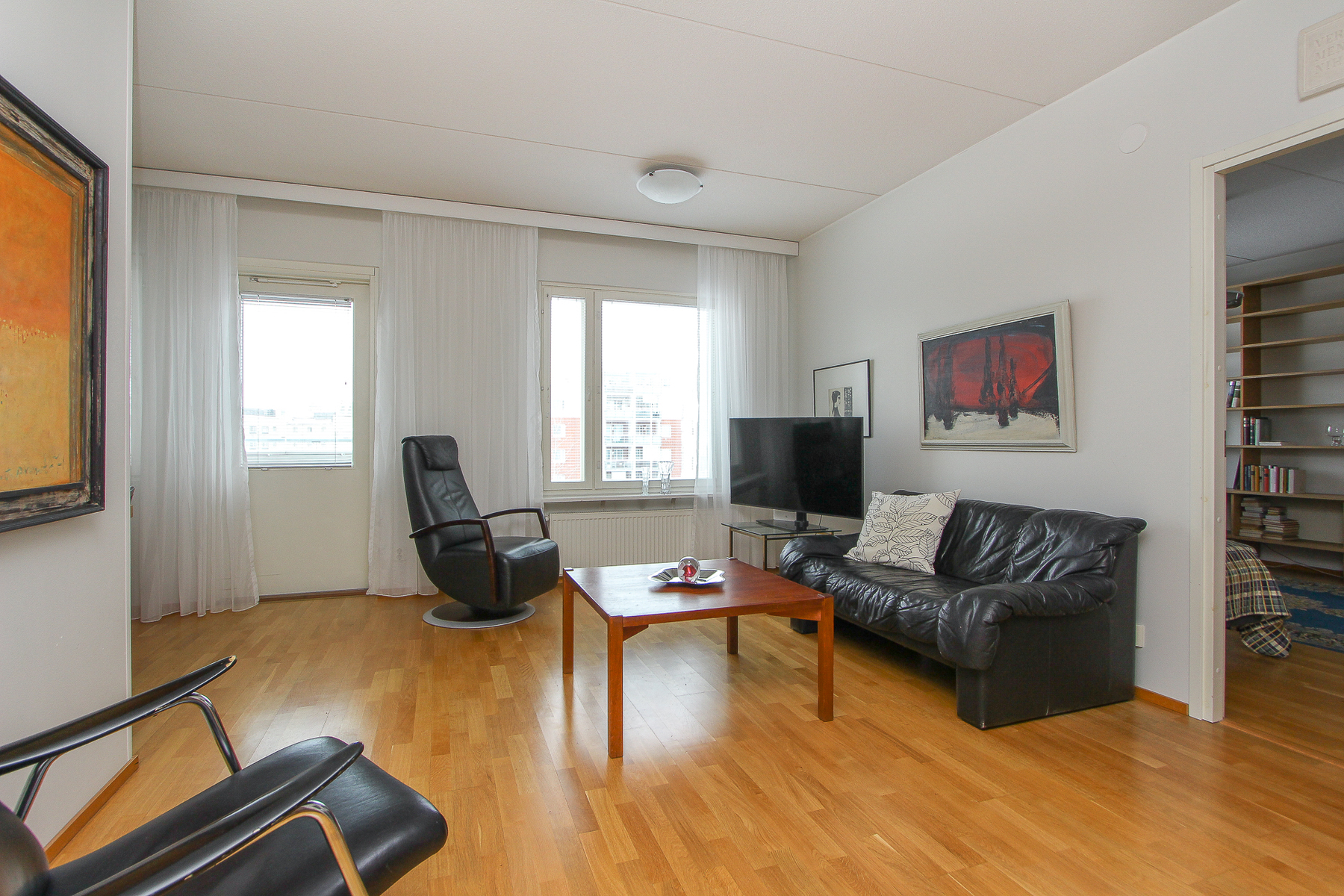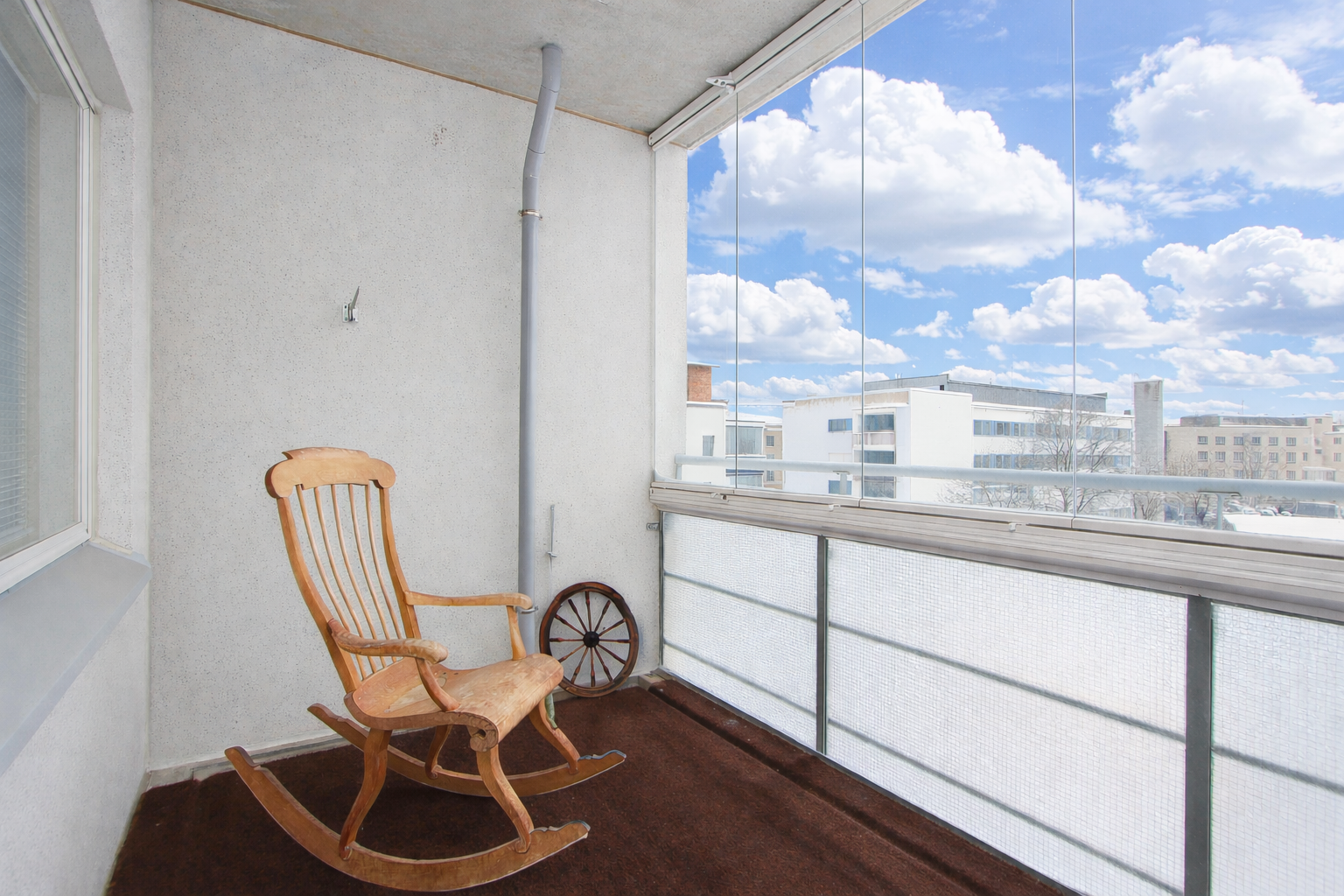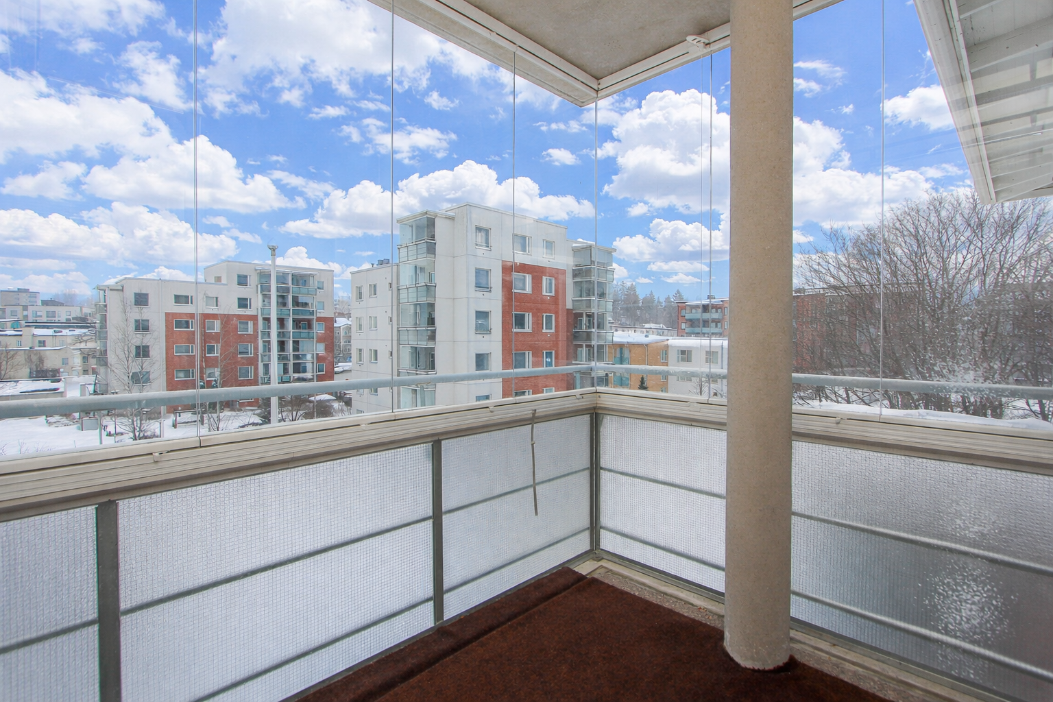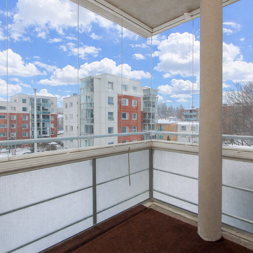 Valoisa ja todella tilava ylimmän kerroksen 86 m²:n saunallinen kolmio tarjoaa viihtyisää asumista erinomaisella sijainnilla 2004 valmistuneessa yhtiössä. Kulmahuoneiston ikkunat kahteen suuntaan tuovat luonnonvaloa ja näkymät ovat avarat. Olohuoneesta on kulku tilavalle lasitetulle parvekkeelle, joka toimii viihtyisänä lisätilana aikaisesta keväästä pitkälle syksyyn, myös viileämmälläkin ilmalla säteilylämmittimien ansiosta.