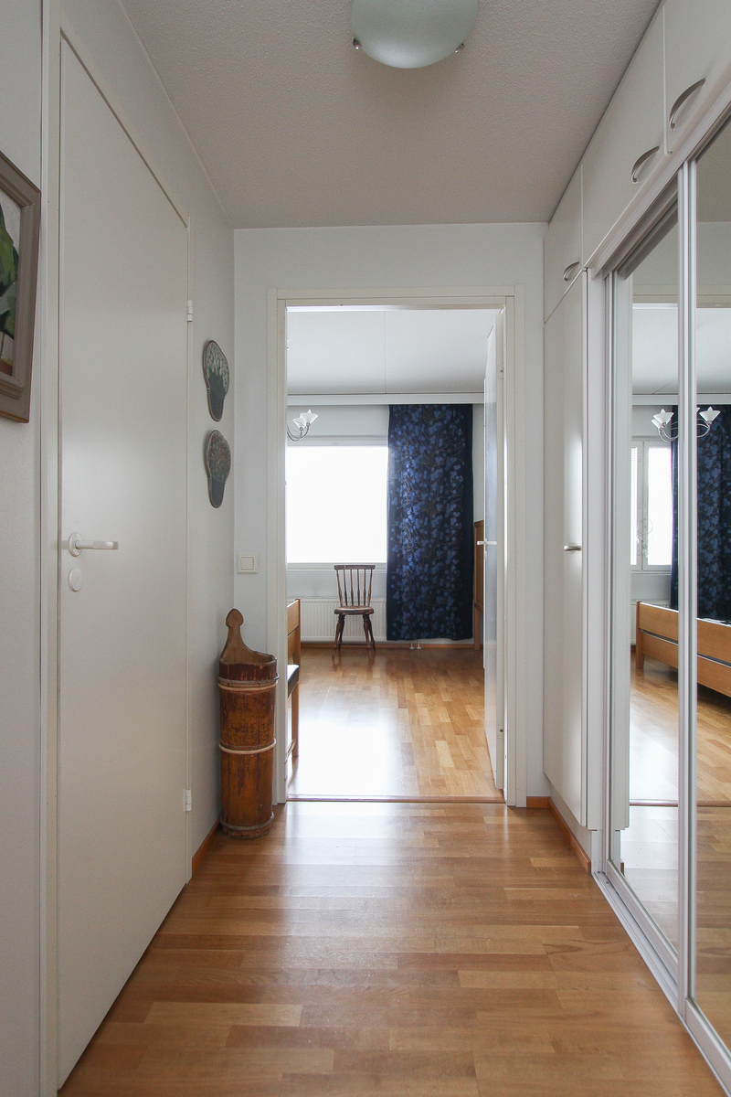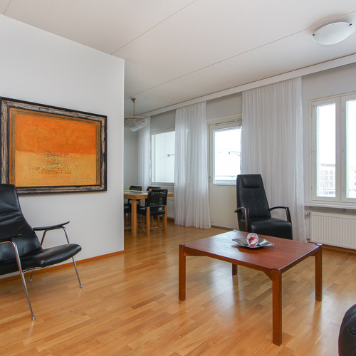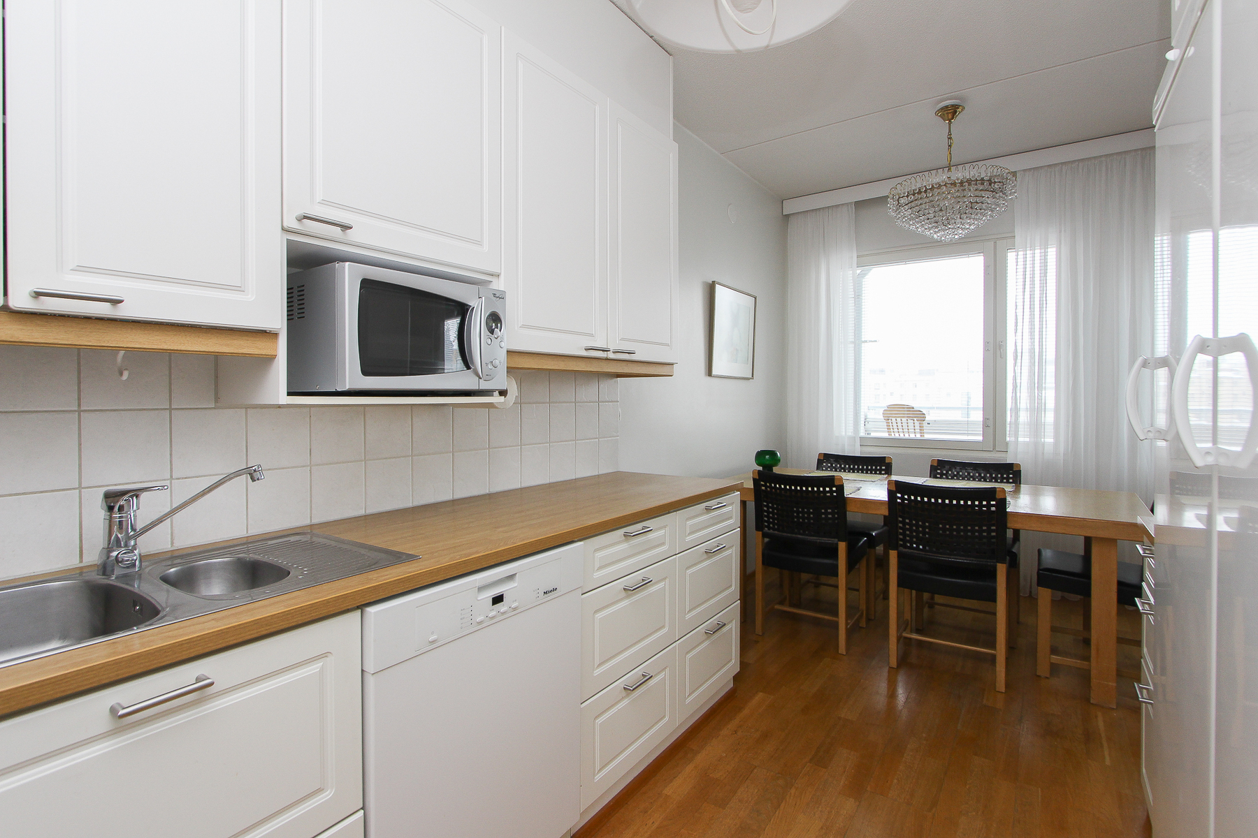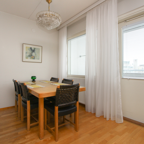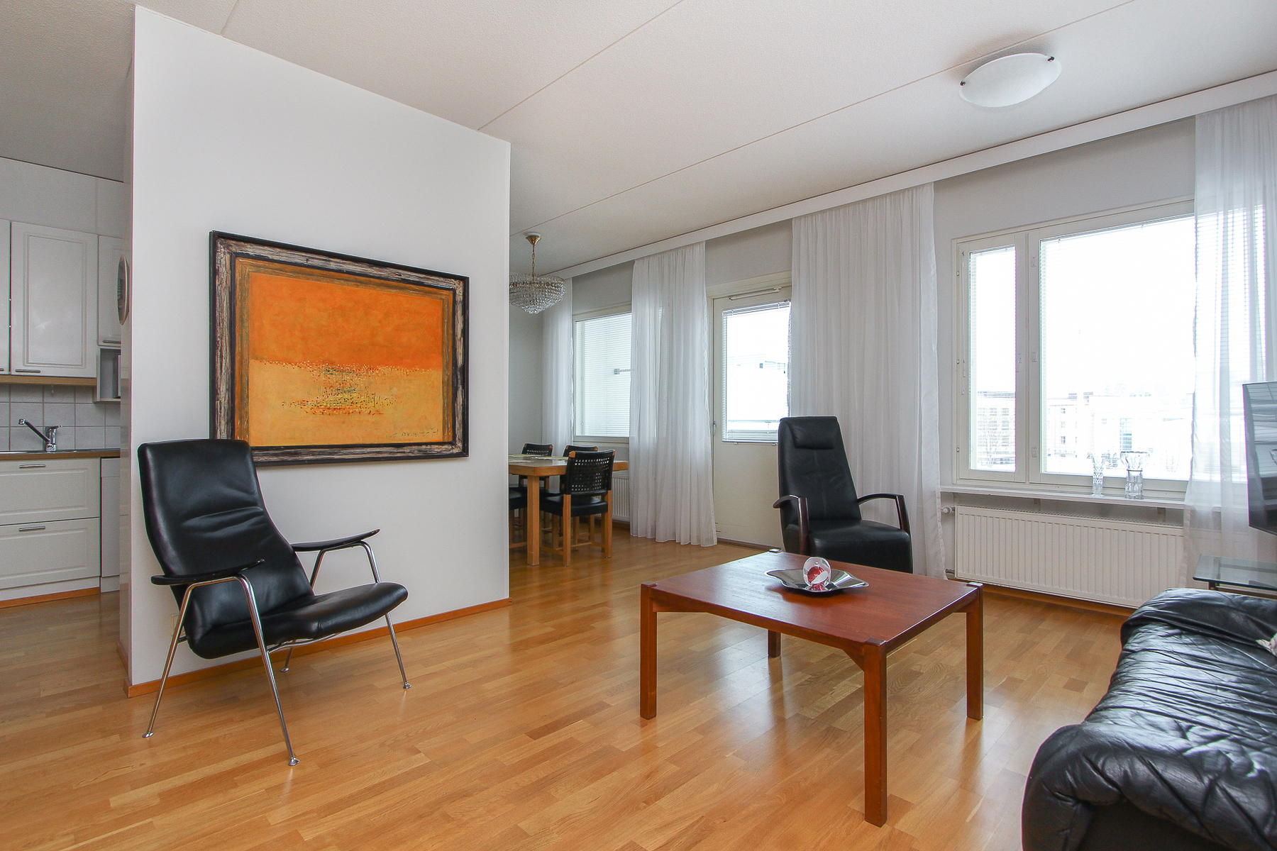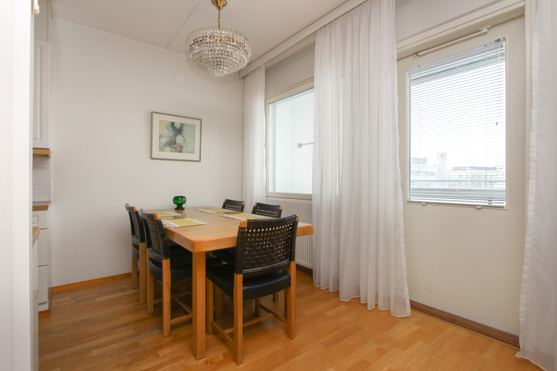 Valoisa ja todella tilava ylimmän kerroksen 86 m²:n saunallinen kolmio tarjoaa viihtyisää asumista erinomaisella sijainnilla 2004 valmistuneessa yhtiössä. Kulmahuoneiston ikkunat kahteen suuntaan tuovat luonnonvaloa ja näkymät ovat avarat. Olohuoneesta on kulku tilavalle lasitetulle parvekkeelle, joka toimii viihtyisänä lisätilana aikaisesta keväästä pitkälle syksyyn, myös viileämmälläkin ilmalla säteilylämmittimien ansiosta.