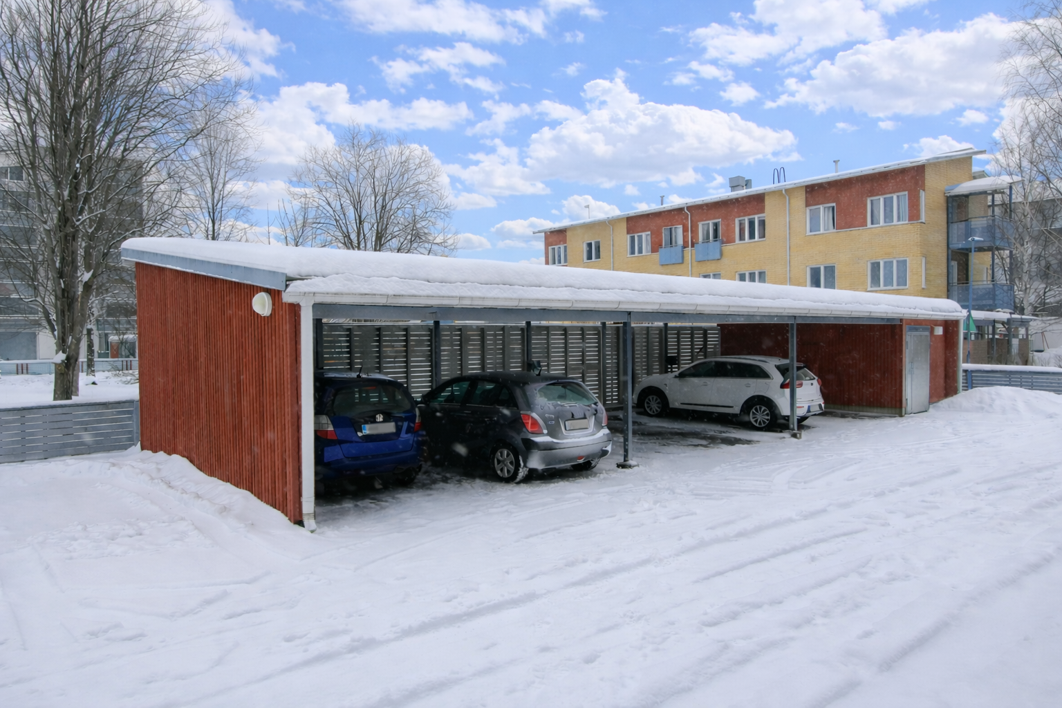 Mahdollisuus ostaa autokatospaikka AP6, 12,50 m², osakkeet nrot 1997-2000, vmh. 6.000 eur (sis. yhtiölainaosuus 998,65 eur).