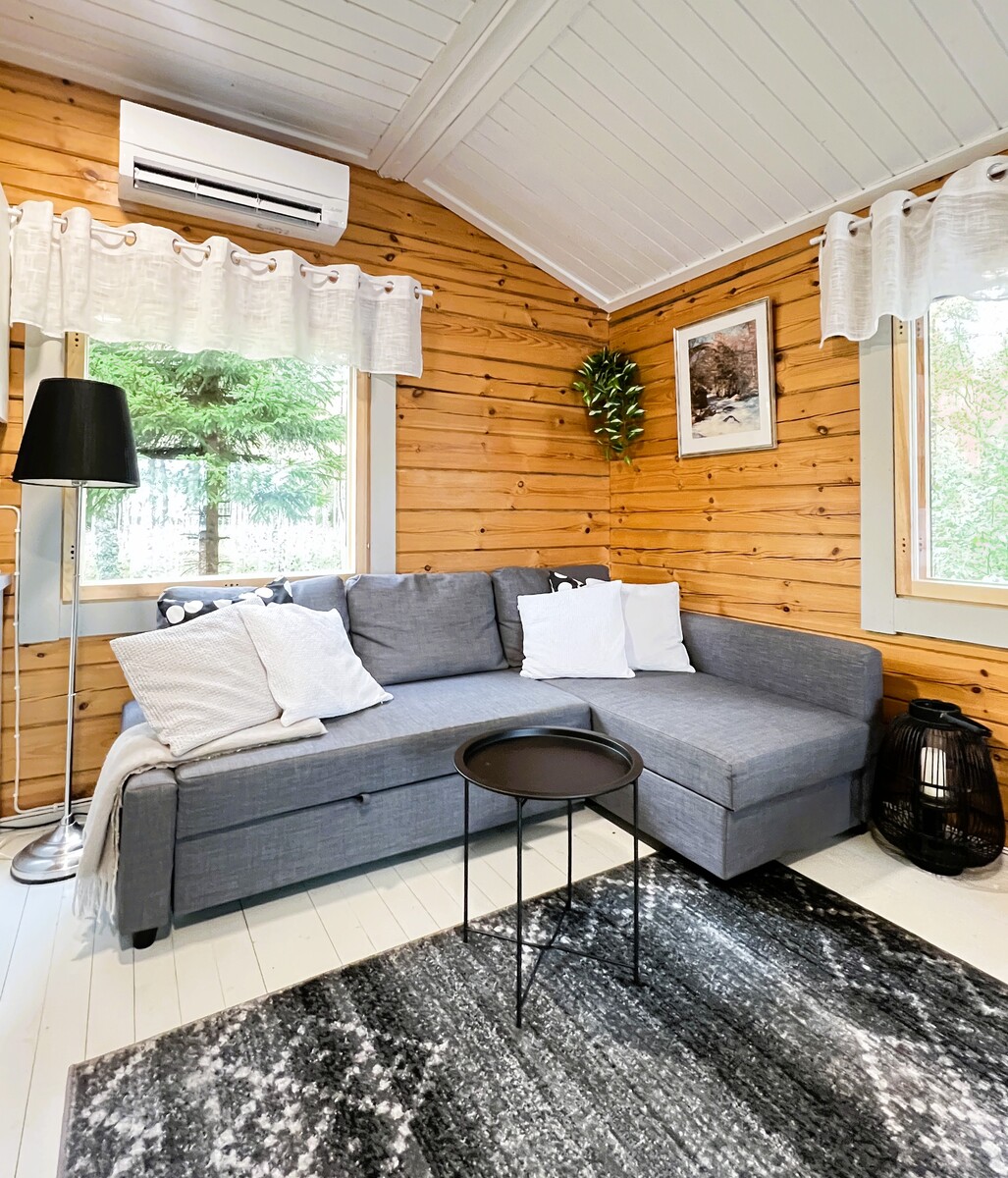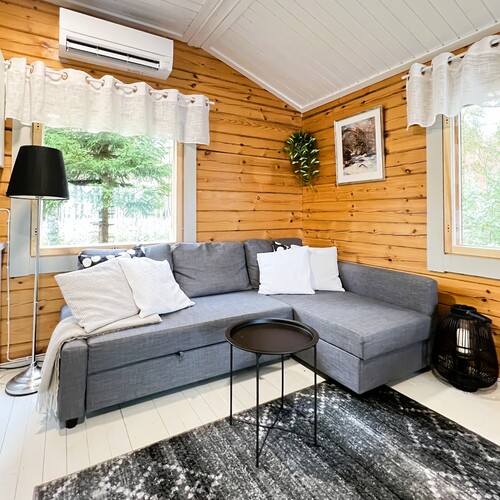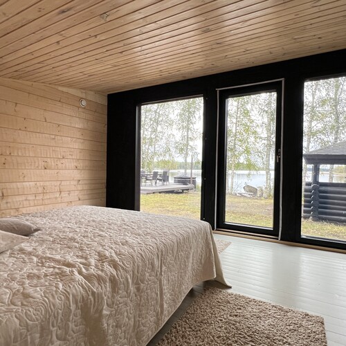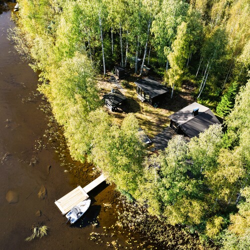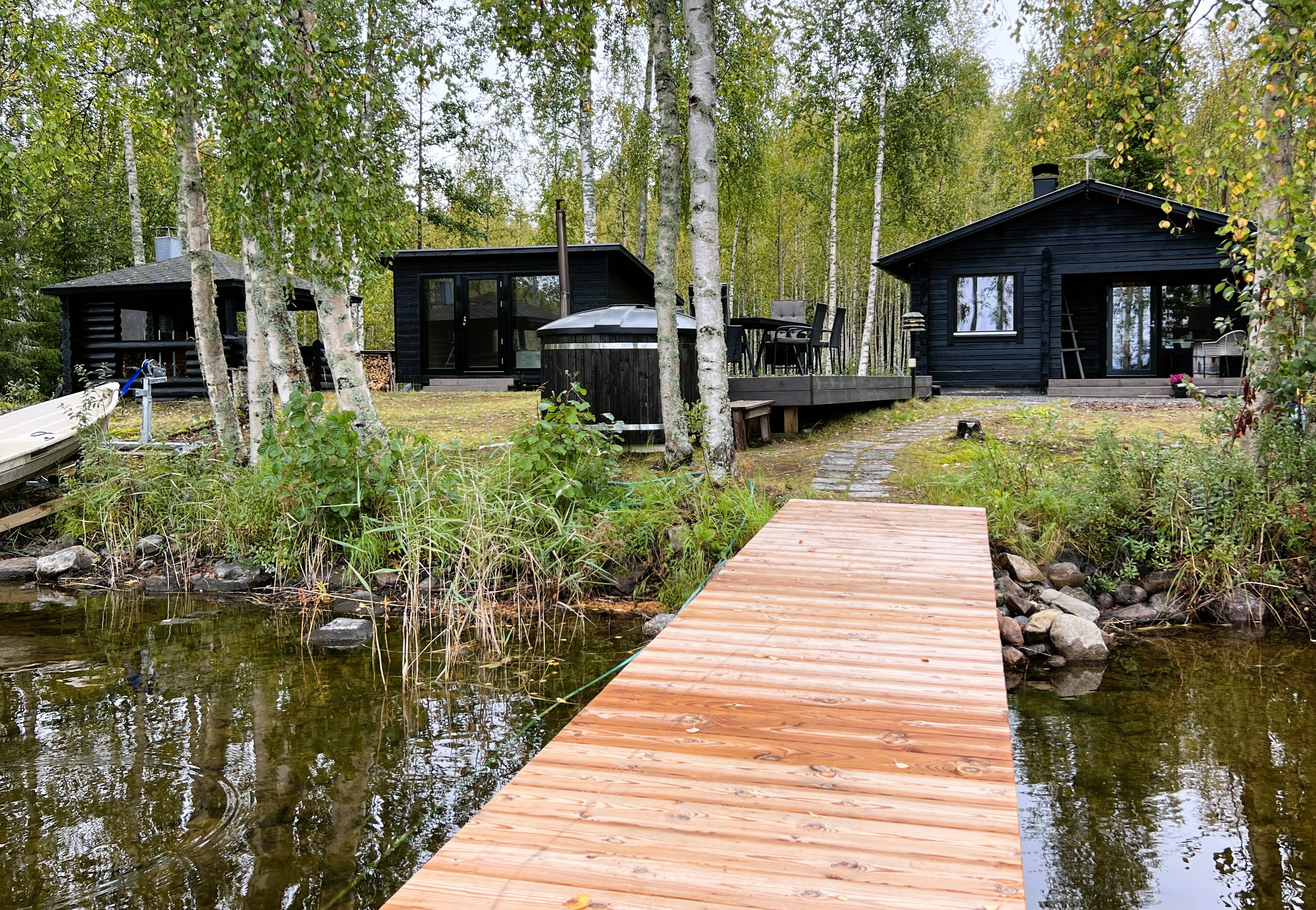 Tämä Hirvensalmella sijaitseva lomakiinteistö yhdistää modernin ilmeen ja perinteisen mökkitunnelman. Päärakennus on saanut nuorekkaan remontin: suuret ikkunat avautuvat suoraan järvimaisemaan ja tuovat valon kauniisti sisälle.