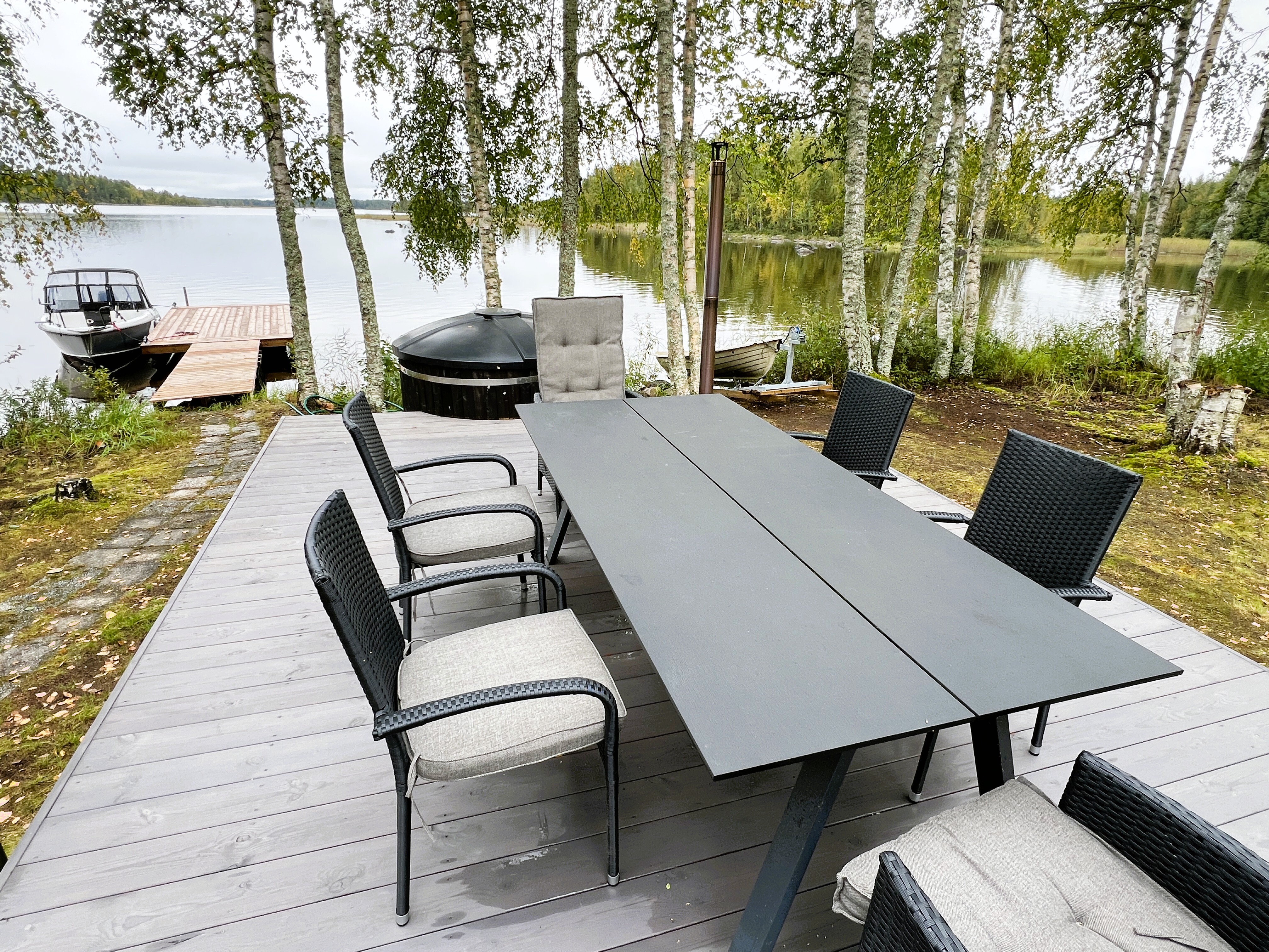 Laaja, yli 3 hehtaarin tontti tarjoaa omaa rauhaa ja tilaa luonnon keskellä. Pihapiiristä löytyy uusi laituri, tilava terassi kesäkeittiöineen, aitta, kota ja lämminvesipalju – täydelliset puitteet vapaa-ajan viettoon ympäri vuoden.