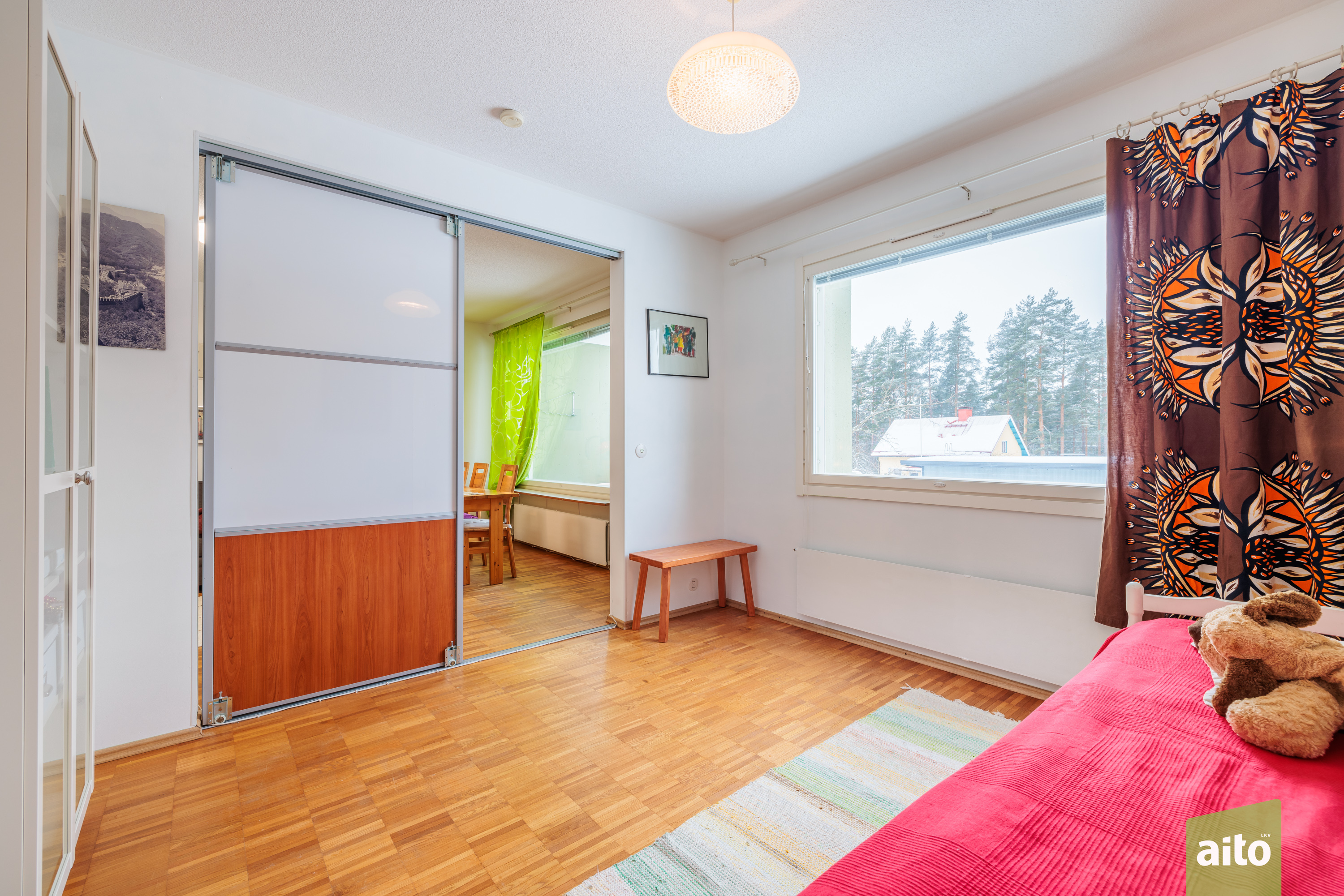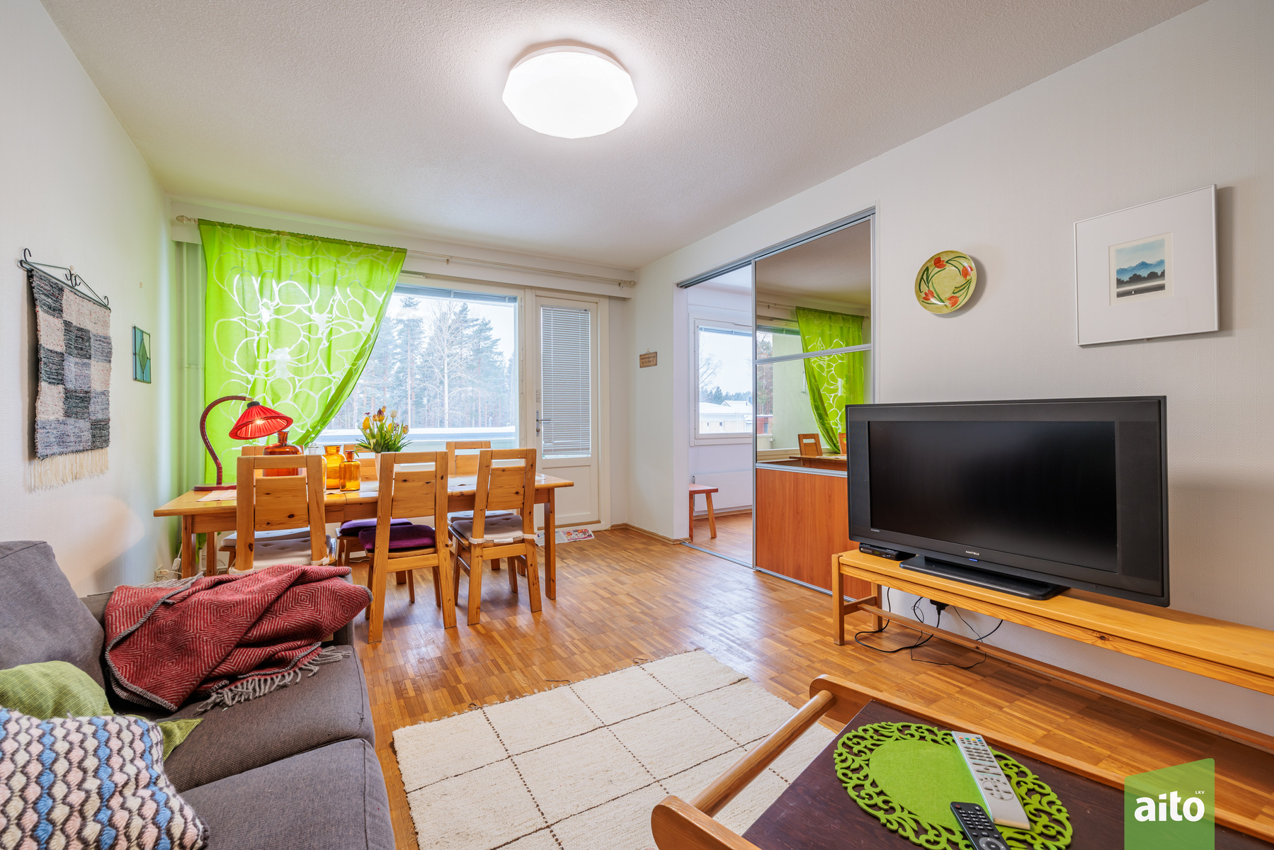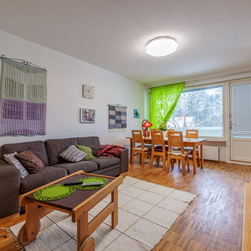 Viihtyisä kolmio Kaukolassa – valoisa, läpitalon koti palveluiden äärellä