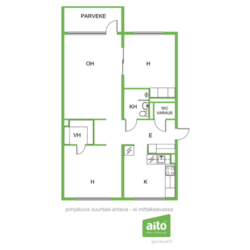 Olohuone on tilava ja helposti kalustettava, ja sen yhteydestä löytyy oma parveke, johon paistaa mukavasti ilta-aurinko. Kaksi makuuhuonetta, vaatehuone ja eteisen säilytystilat tekevät tästä kodista erittäin toimivan niin pariskunnalle kuin lapsiperheelle.