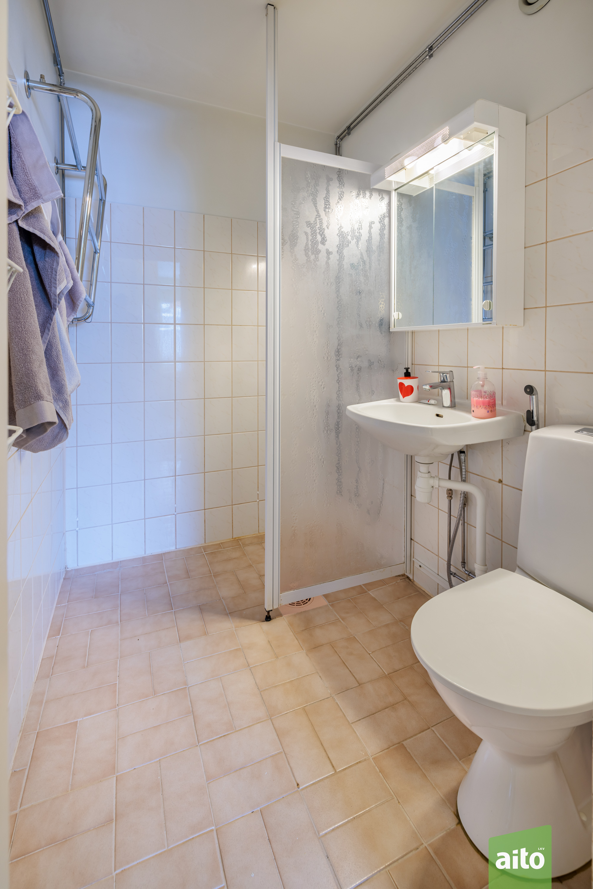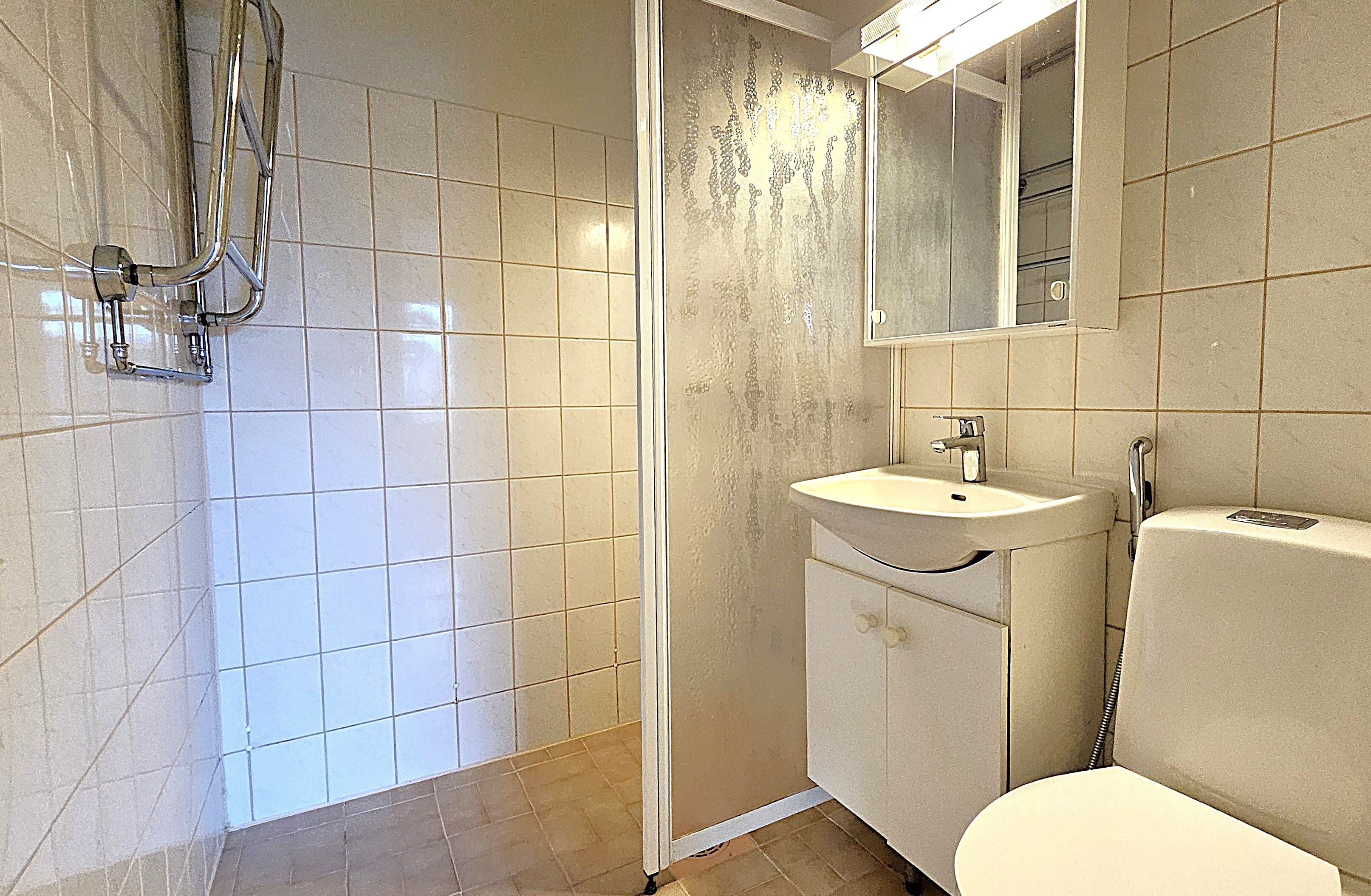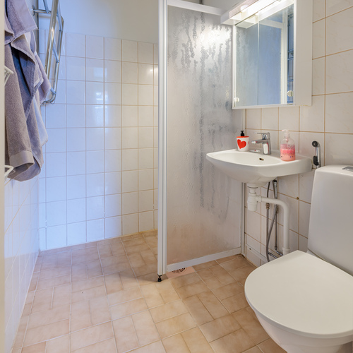 Asunto tarjoaa helppoa arkielämää hyvillä tilaratkaisuilla, esim. ovellinen pyykinhoitotila antaa tilaa muille toiminnoille kylpyhuoneessa. Tilan saa palautettua erillis-wc tilaksi niin halutessasi.