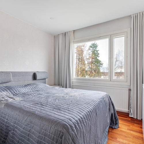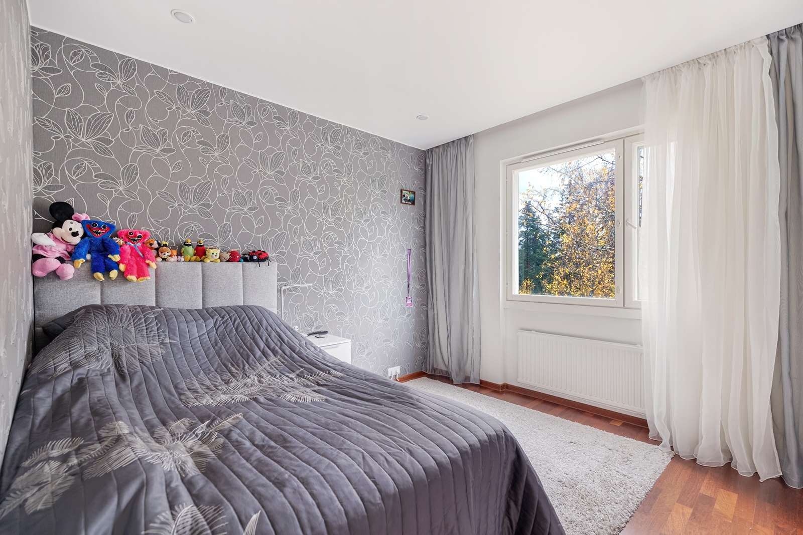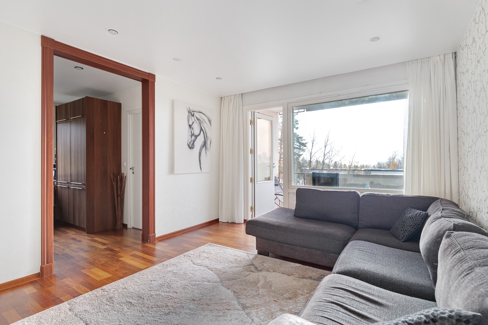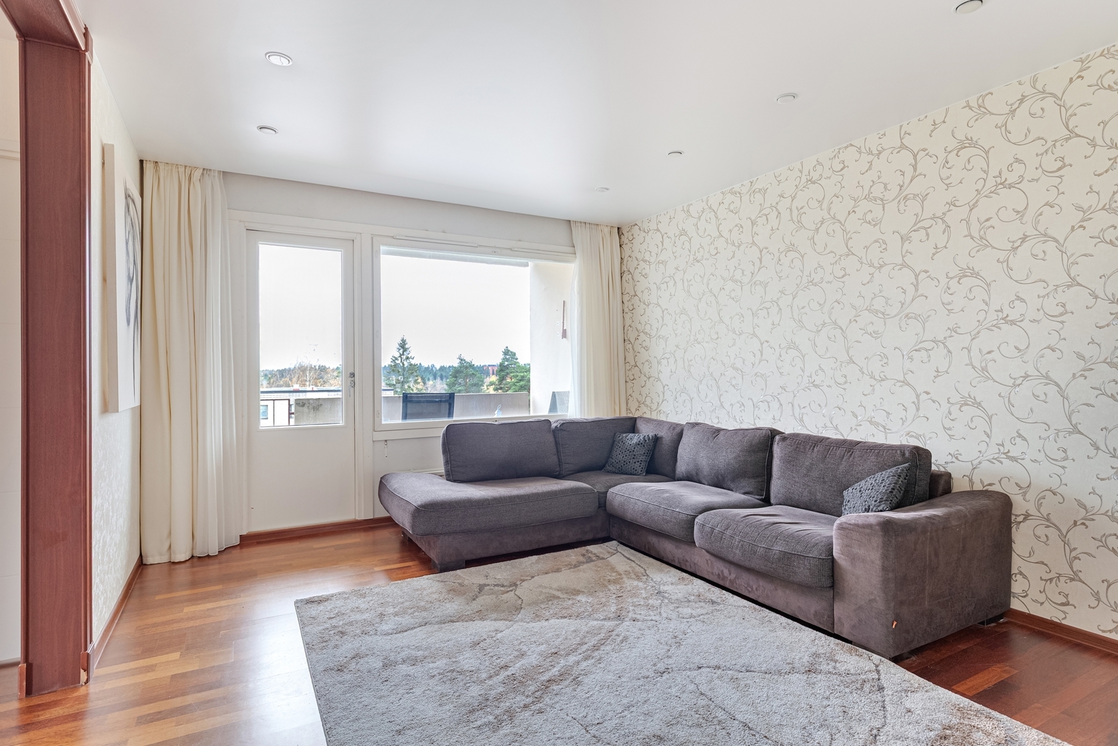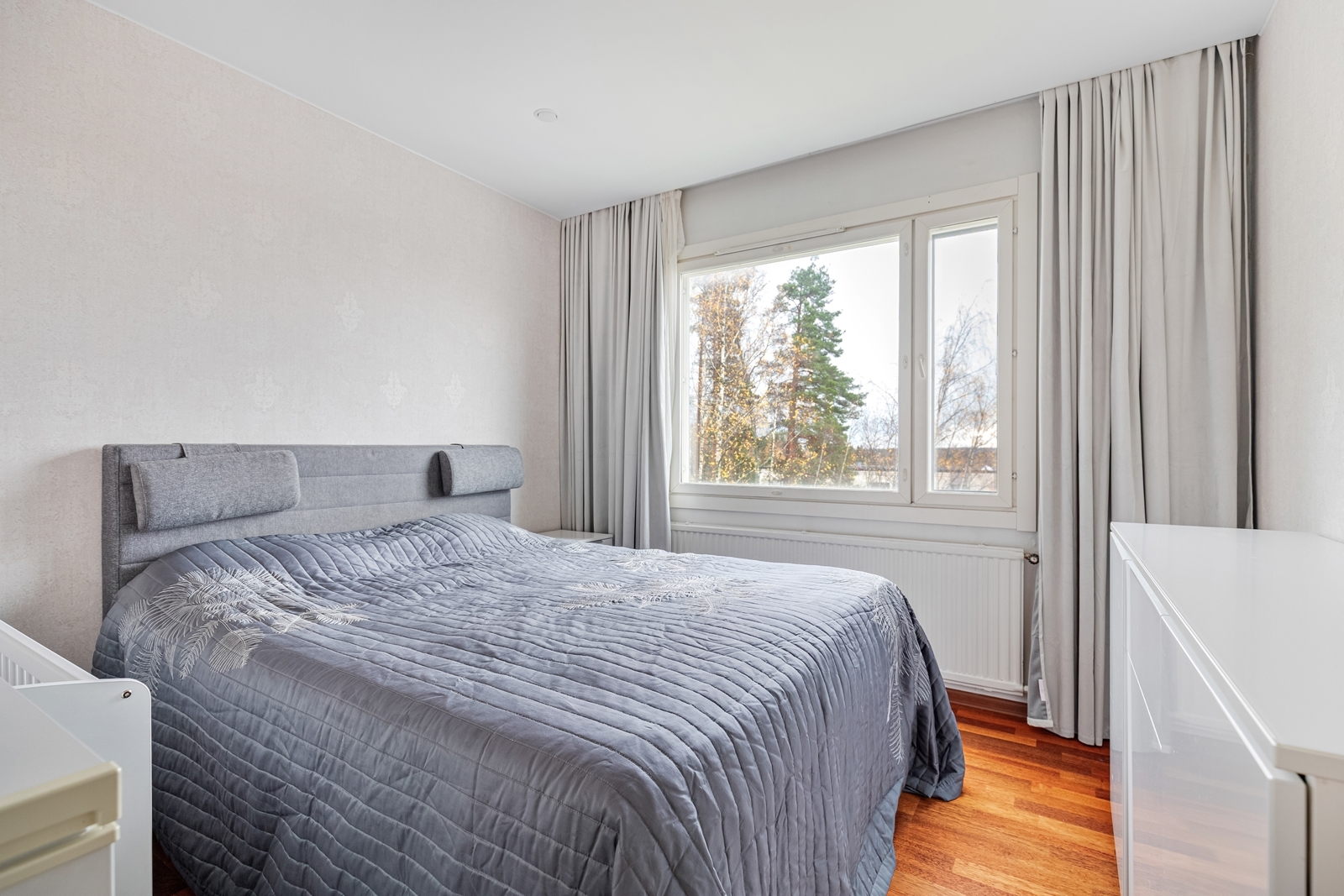 Olohuone on avara ja valoisa, ja siitä avautuu näkymä rauhalliseen ympäristöön. Makuuhuoneet ovat tilavia ja helposti kalustettavia. Kylpyhuonetta ei ole vielä remontoitu, mutta se on siisti ja käyttökelpoinen sellaisenaan, tarjoten tulevalle omistajalle mahdollisuuden tehdä siitä juuri oman näköisensä.