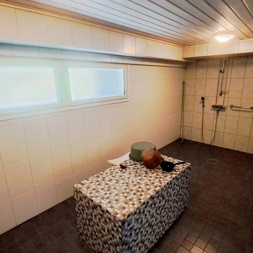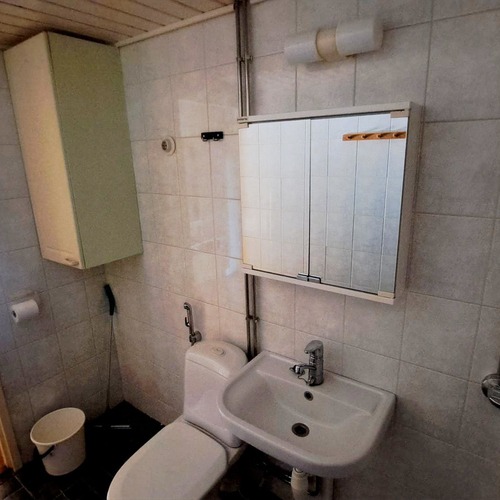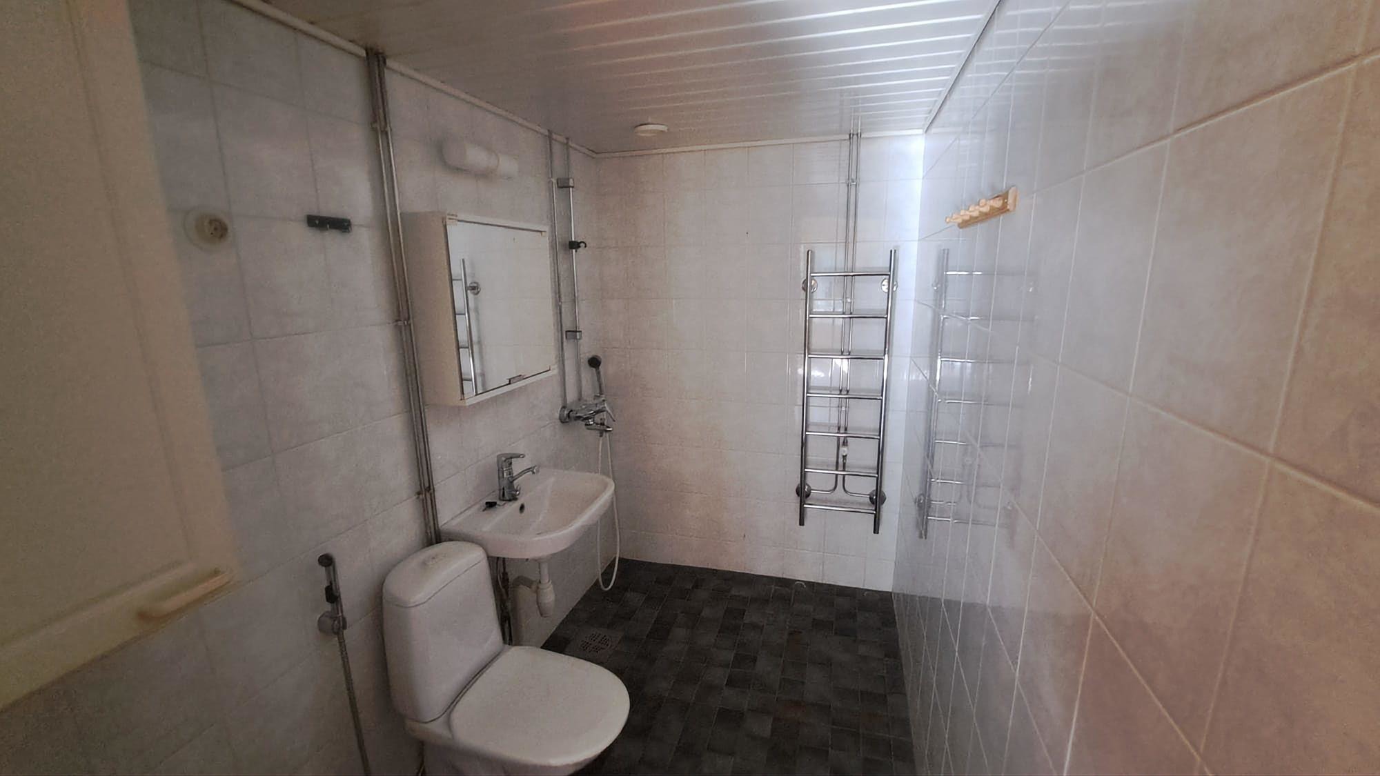 Pintamateriaalit: lattia laatta, seinät kaakeli, katto maalattu paneeli.