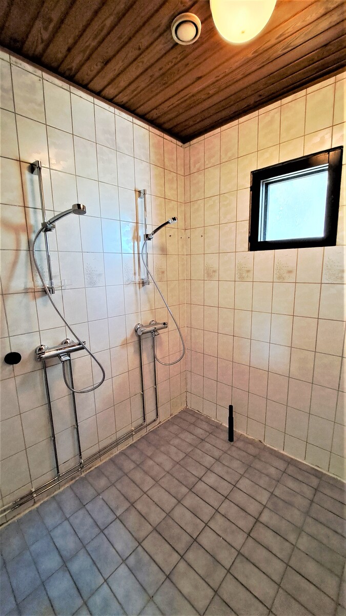 Pintamateriaalit: lattia laatta, seinät kaakeli/paneeli/tiili, katto paneeli.