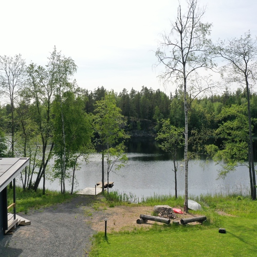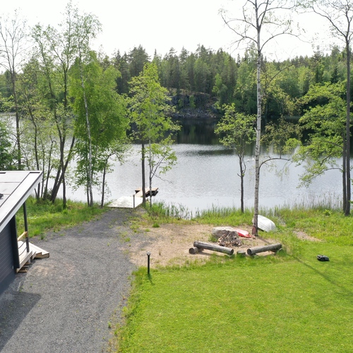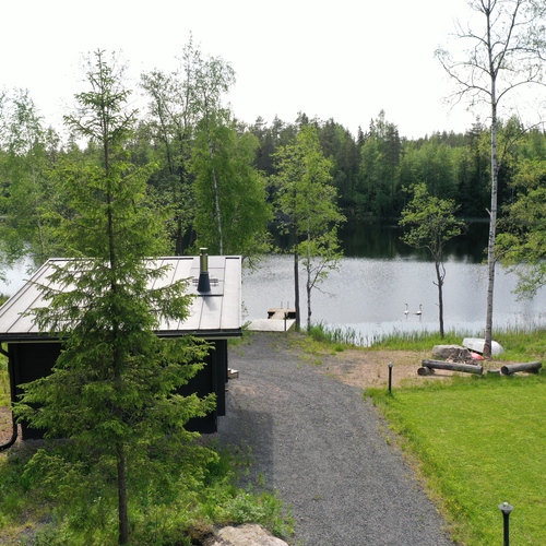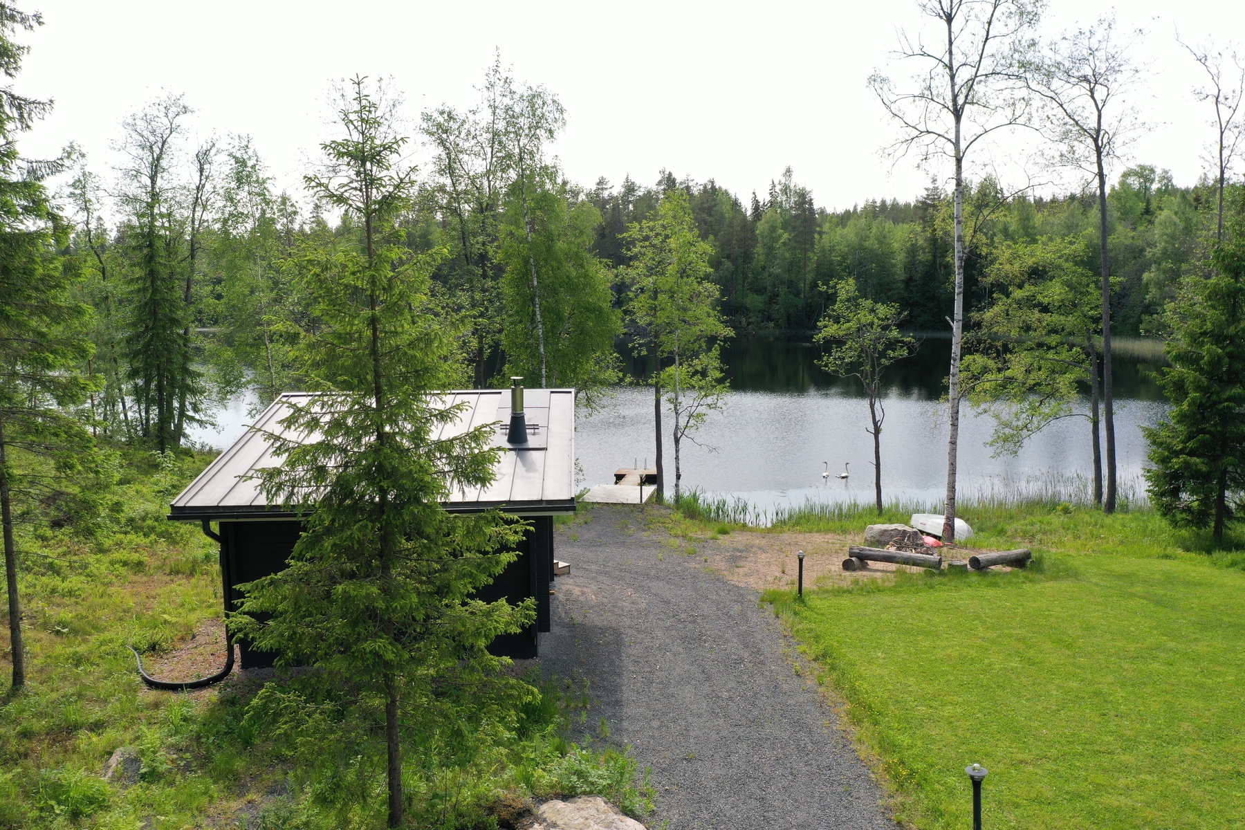An idyllic lakeside sauna, complete with a spacious deck and a hot tub, is situated near the shoreline. This setup guarantees unforgettable moments of relaxation in the serene, picturesque surroundings of Lake Suomijärvi.