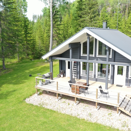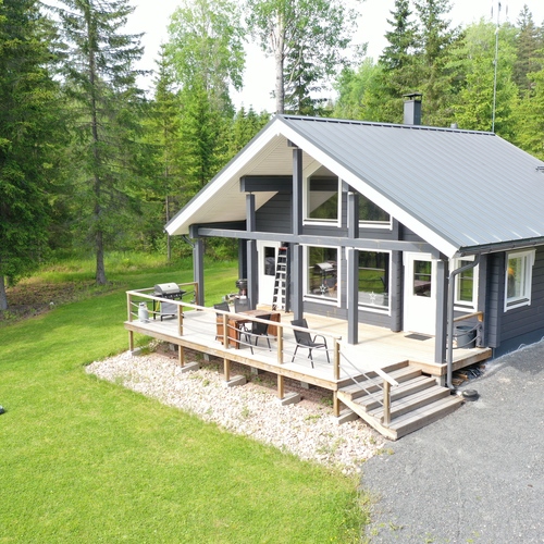 Vuonna 2021 valmistunut lamellihirsinen huvila yhdistää suomalaisen hirsirakentamisen ajattoman tunnelman ja nykyaikaisen asumisen mukavuudet. Avara ja korkeakattoinen tupakeittiö on tämä huvilan sydän – suuret ikkunat kehystävät upeat näkymät kirkasvetiselle Suomijärvelle, ja varaava takka luo lämpöä sekä tunnelmaa pimeneviin iltoihin.
