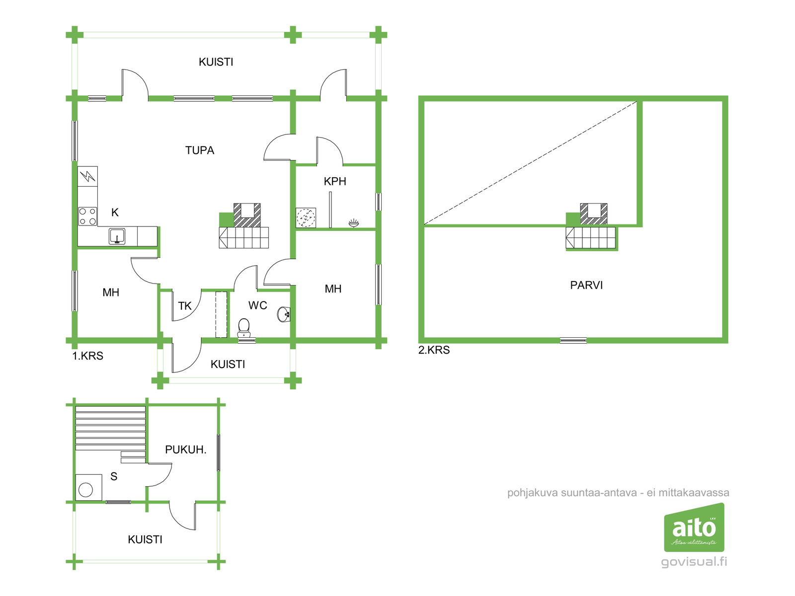 Kaksi makuuhuonetta ja tilava parvi tarjoavat runsaasti nukkumatilaa perheelle ja vieraille. Täysin varusteltu keittiö, moderni kylpyhuone ja erillinen wc tekevät vapaa-ajanvietosta helppoa ja mukavaa myös talvella. Laattalattiat lattialämmityksellä takaavat miellyttävän asumisen vuoden ympäri.