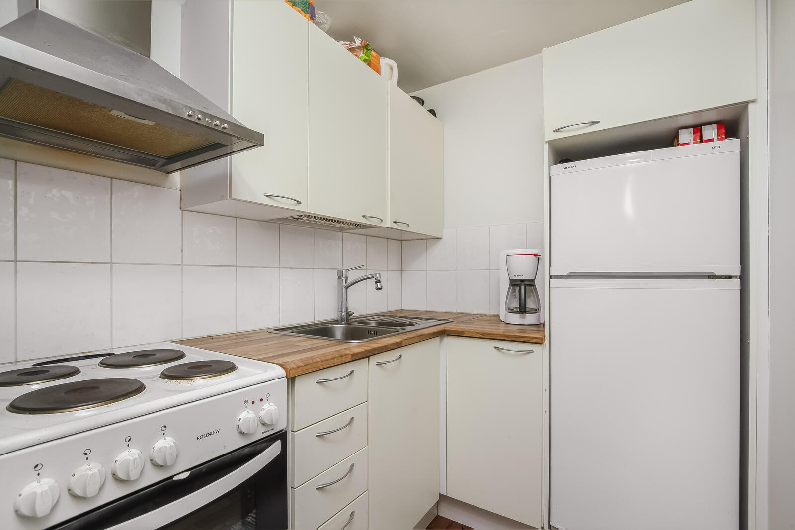 Varusteet: jääkaappipakastin, sähköliesi, liesituuletin