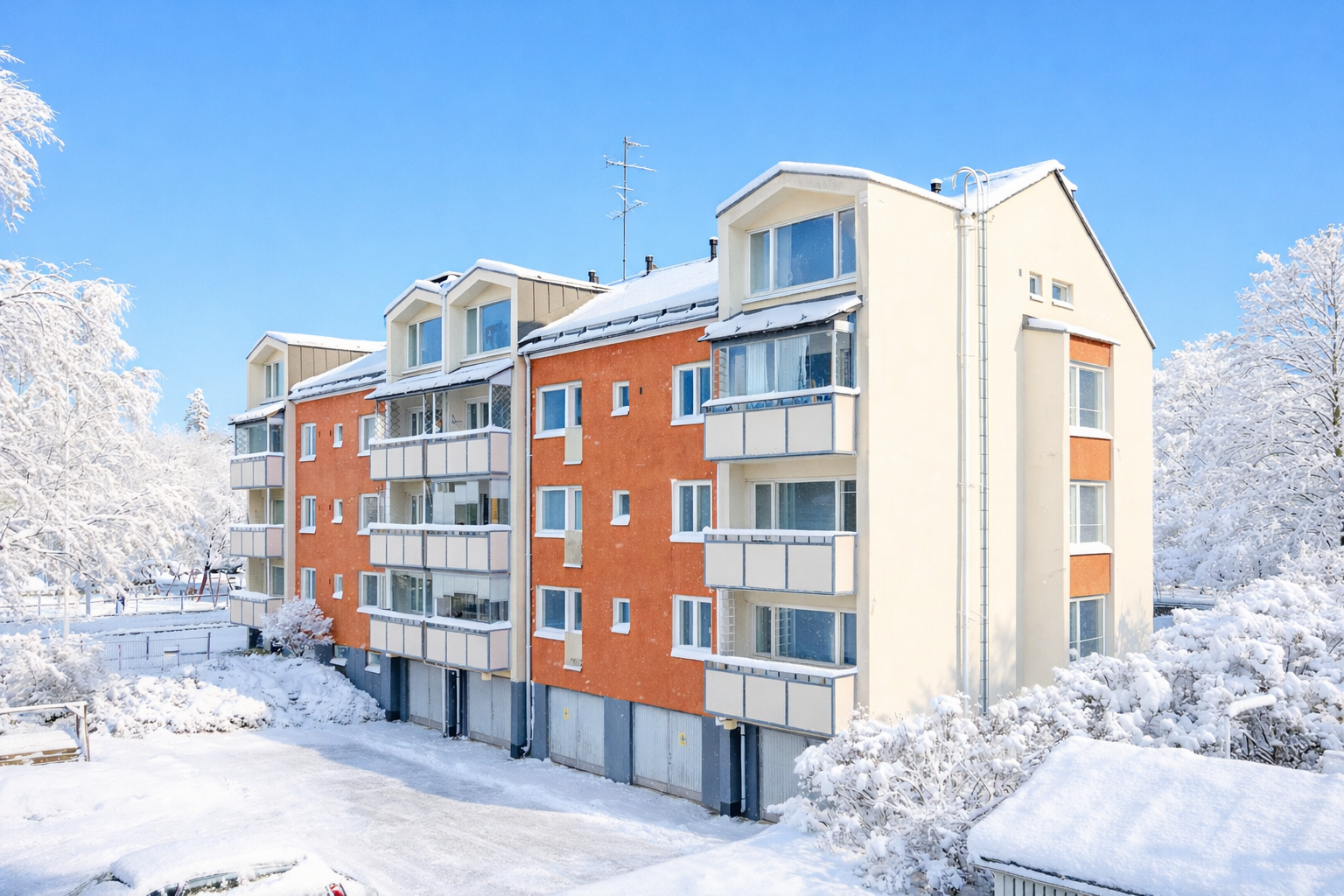 Erikoisuutena tilava vinttivarasto, jonne on käynti suoraan asunnosta.