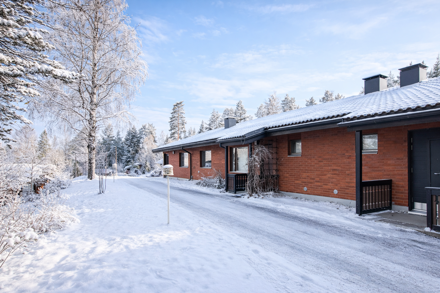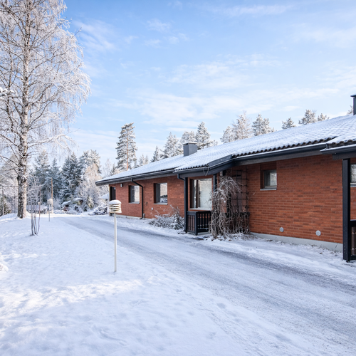 Saunallinen rivitalokaksio Laajaharjun rauhassa – ilta-auringon piha ja loistavat ulkoilumaastot