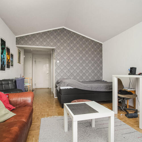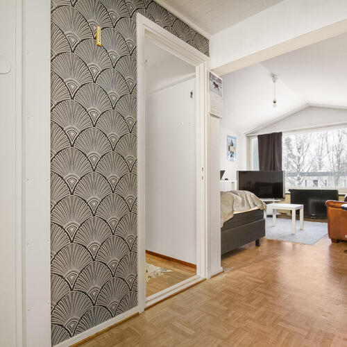Tässä 50-luvun vankassa kivitalossa sijaitseva 30-neliöinen kattohuoneisto Lauritsalassa on täynnä charmia. Ylimmän kerroksen sijainti tarjoaa oman rauhan, ja asunnon erikoisuutena on suora käynti omalle vinttitilalle. Vaikka hissiä ei ole, vanhan talon tunnelma ja asunnon persoonallisuus tekevät kodin kiipeämisen arvoiseksi!