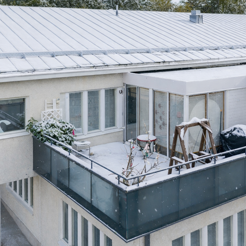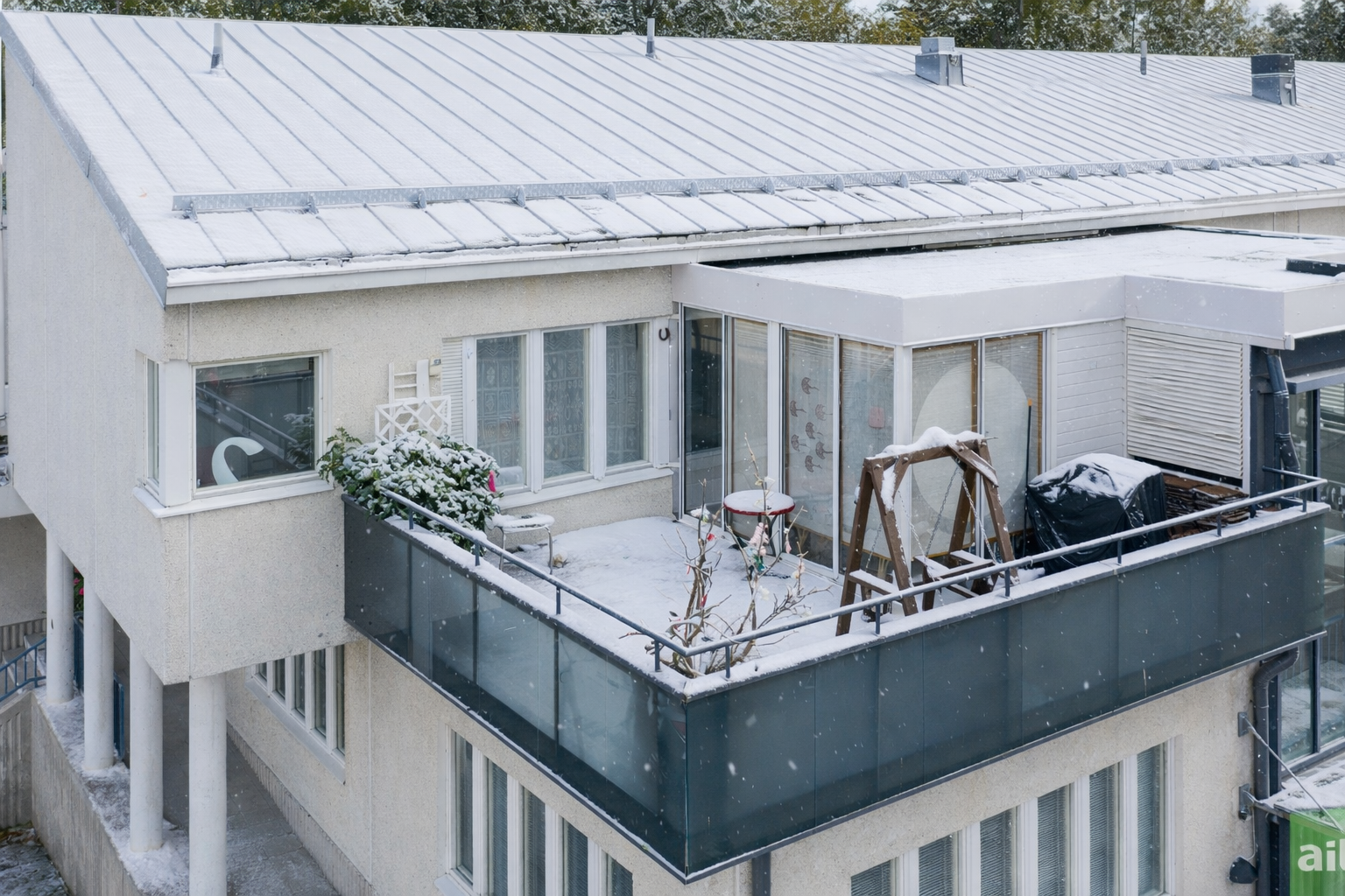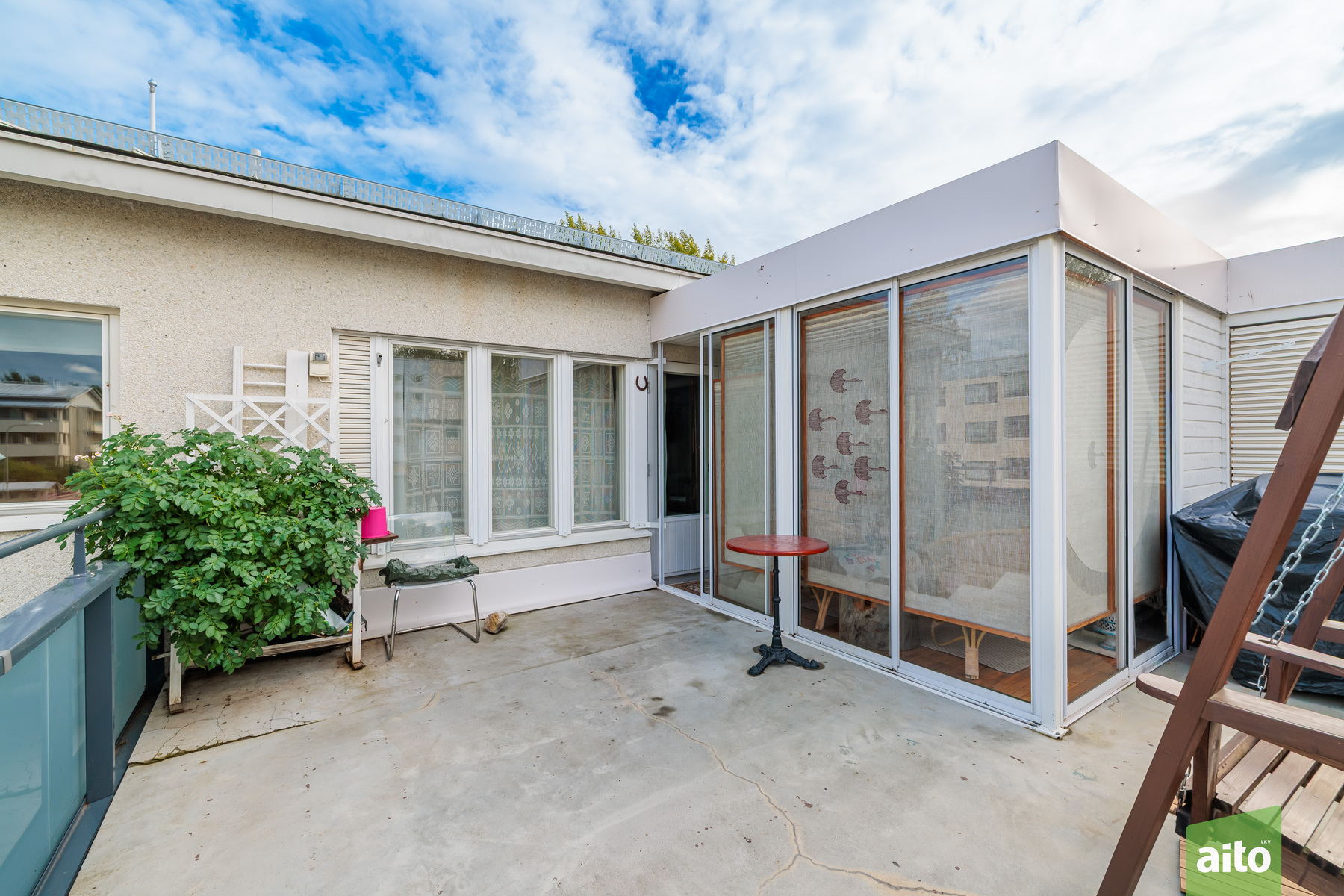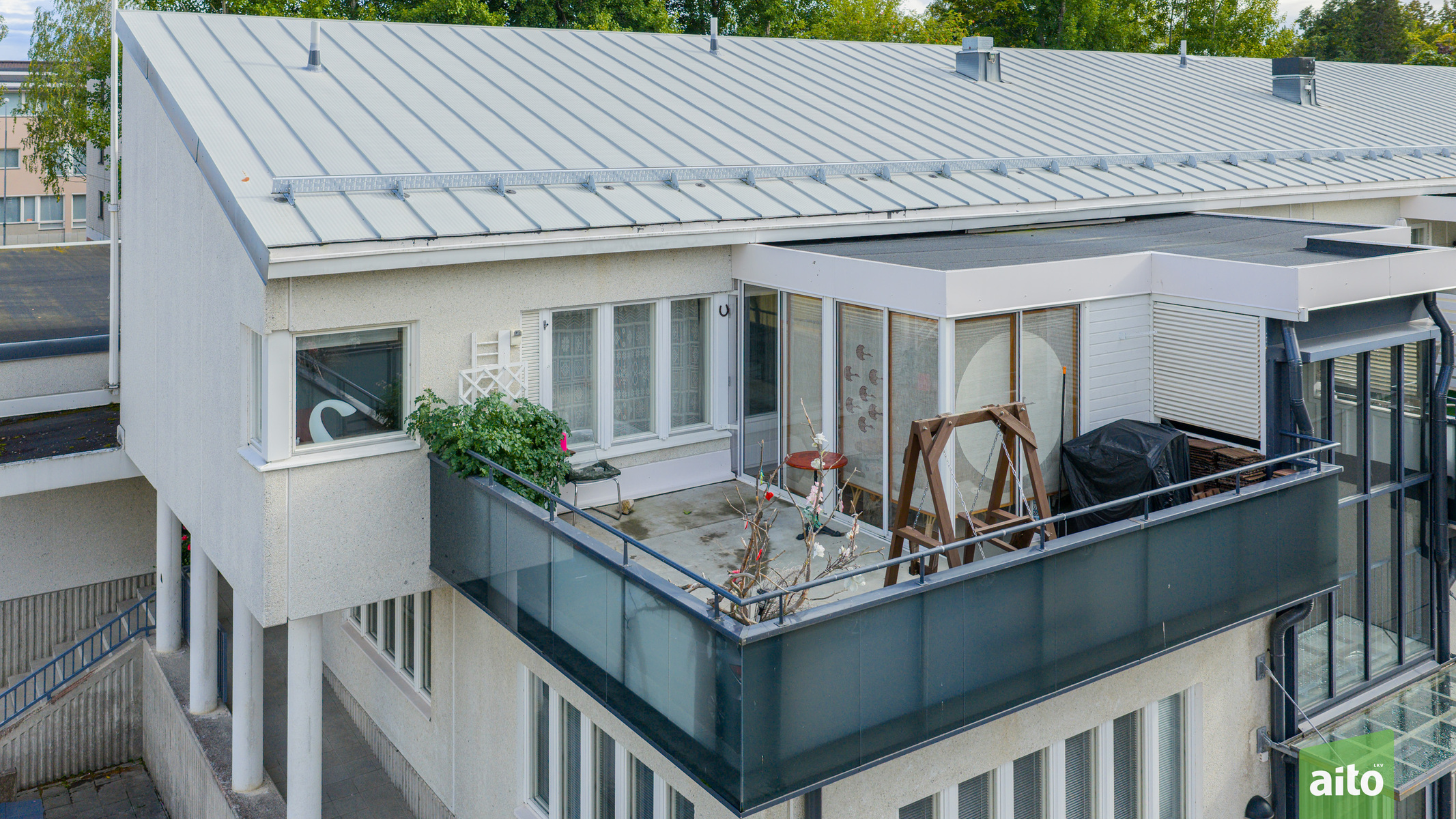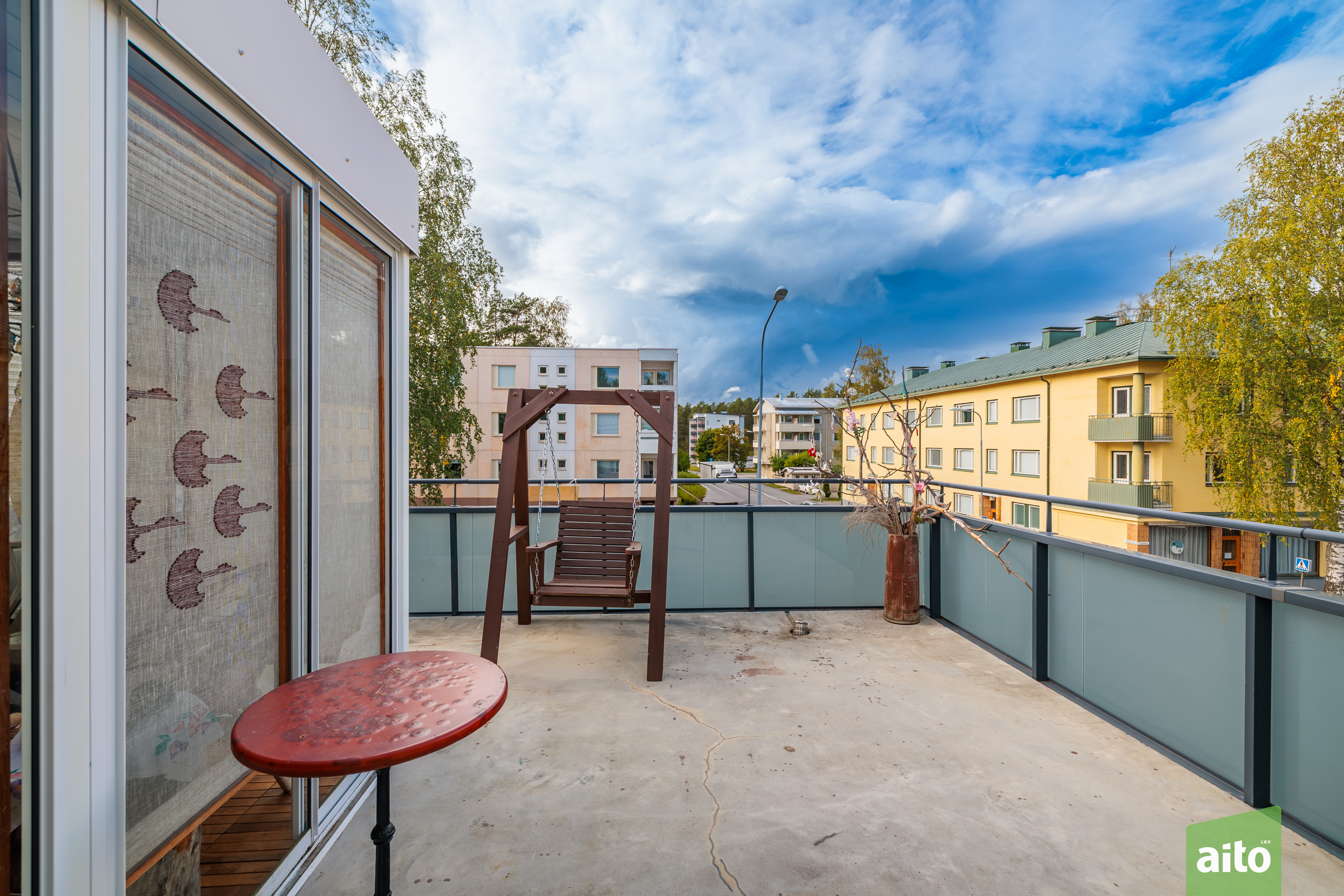 Lasitettu terassi noin 9 m² ja kattoterassin pinta-ala kokonaisuudessaan noin 26 m²