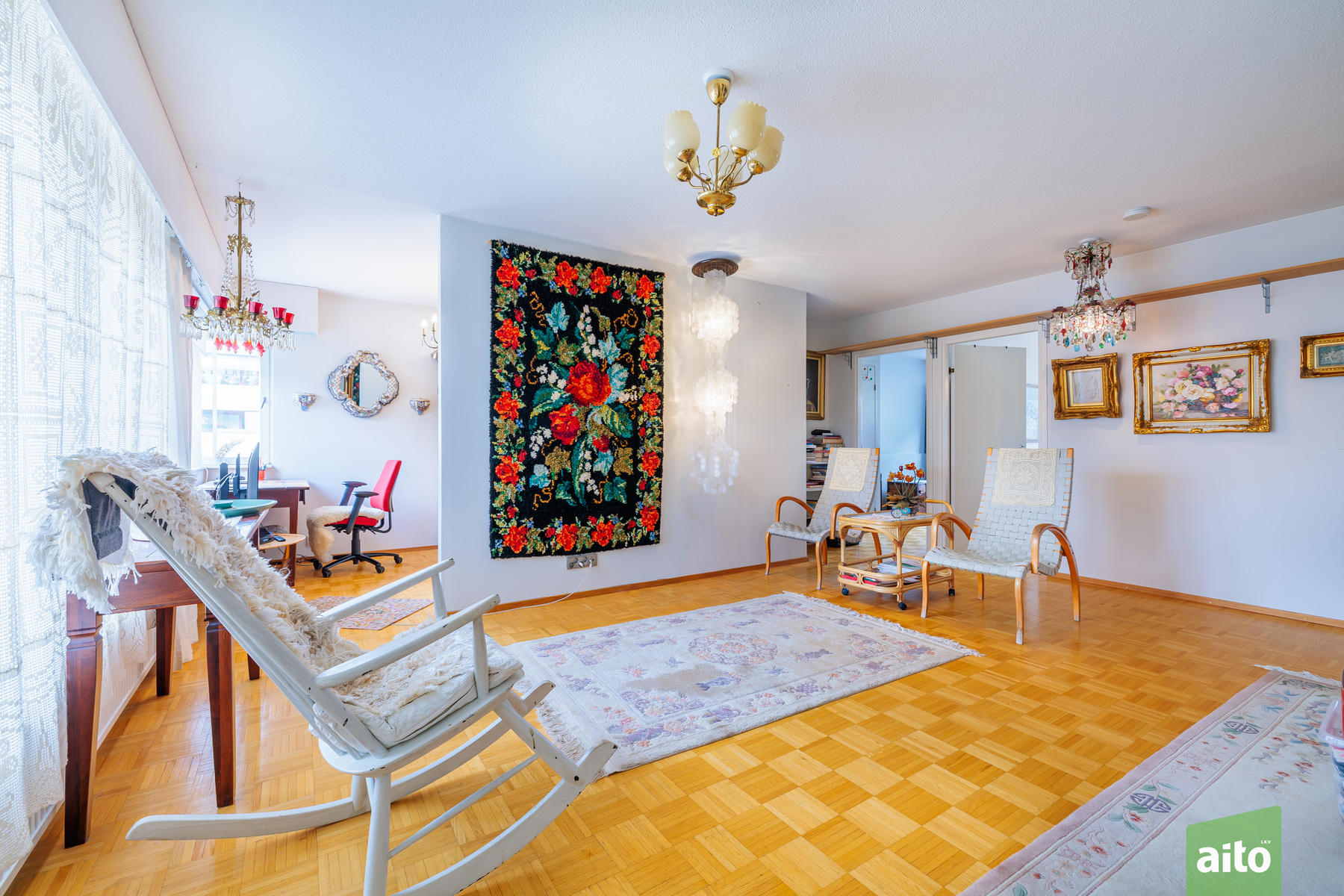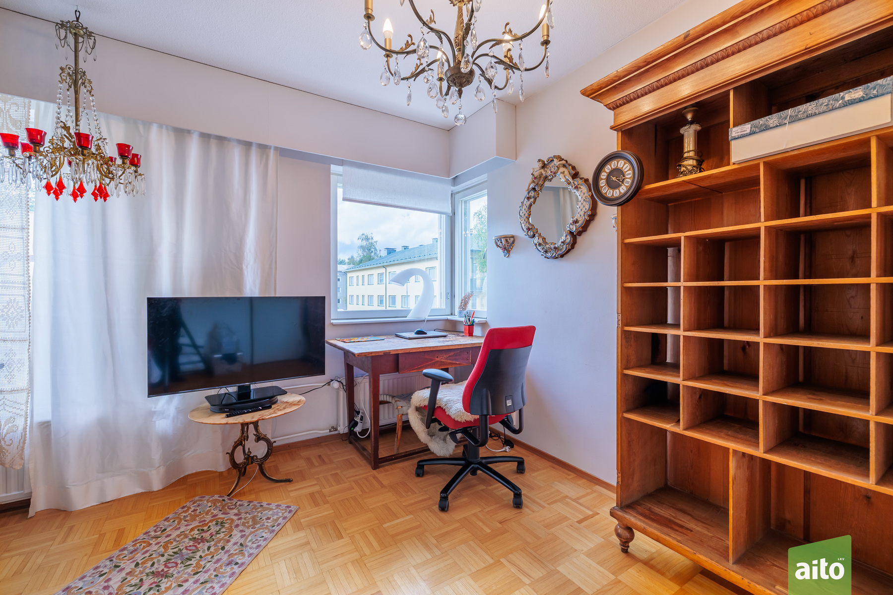 Työhuone: Olohuoneen jatkeena työhuone / makuuhuone