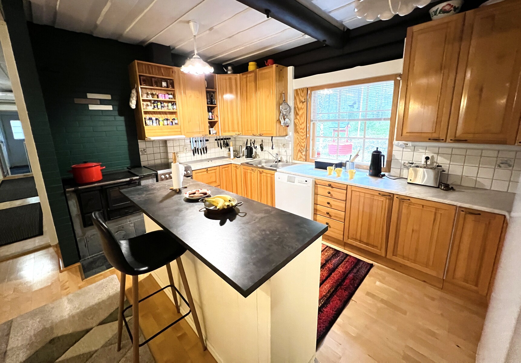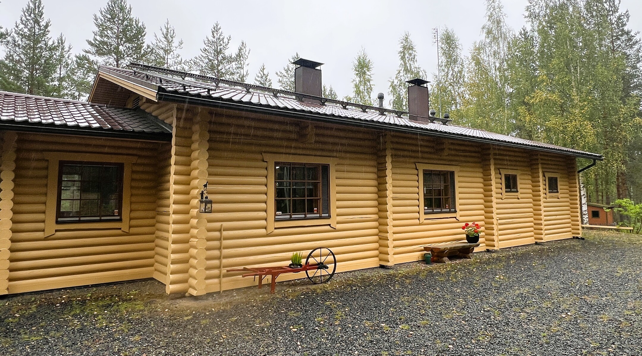 Arkea tukevat käytännölliset ratkaisut: kaksi ilmalämpöpumppua, varaava takka, puuhella sekä valokuituliittymä takaavat nykyaikaisen asumismukavuuden sekä saman etätyömahdollisuuden kuin kaupungissa. Kodin yhteydessä on myös kahden auton hirsinen autotalli varastoineen, kesäkeittiö sekä metsän siimeksessä oleva pieni savusauna, joka kutsuu perinteiseen saunomiseen.