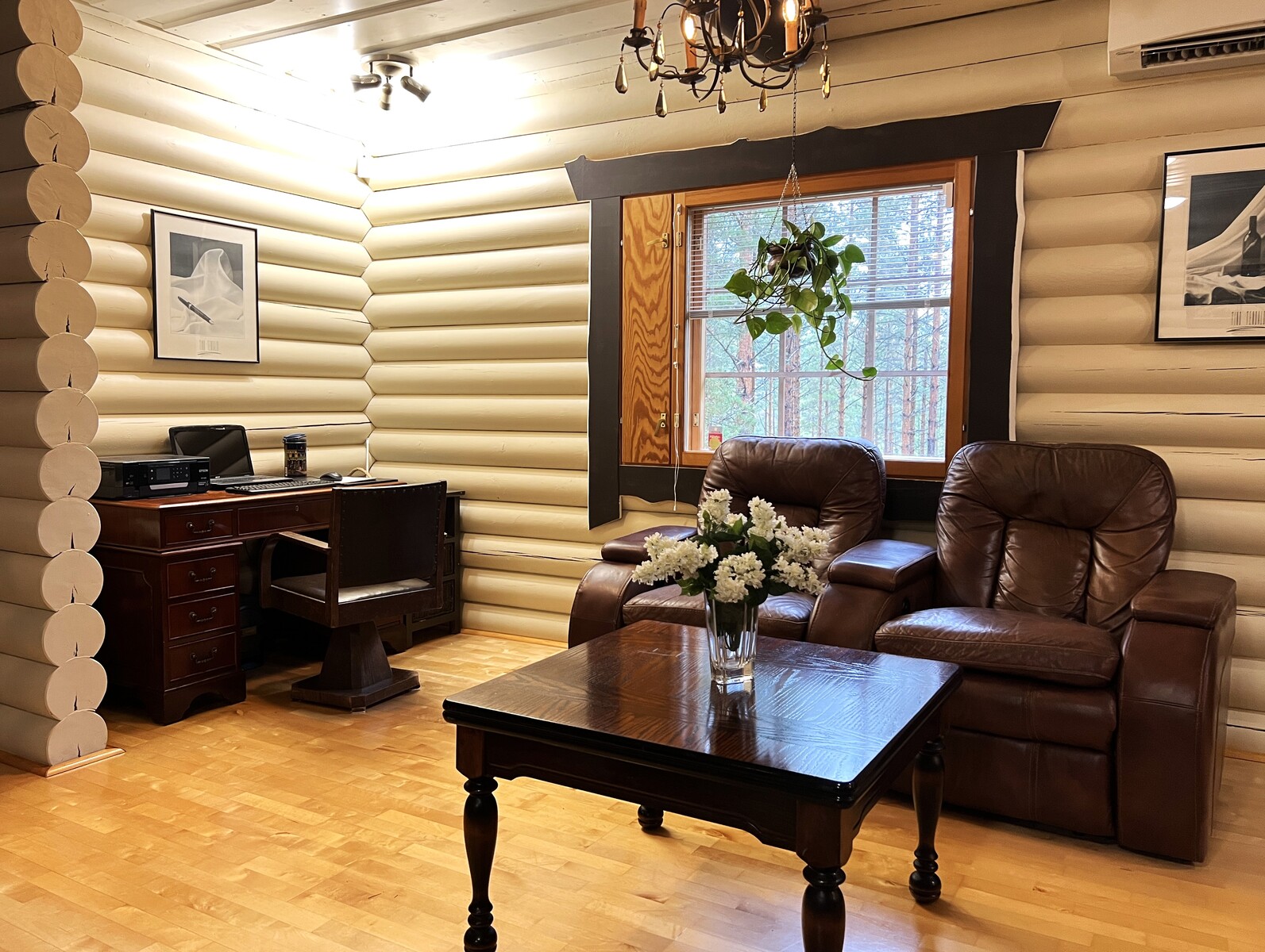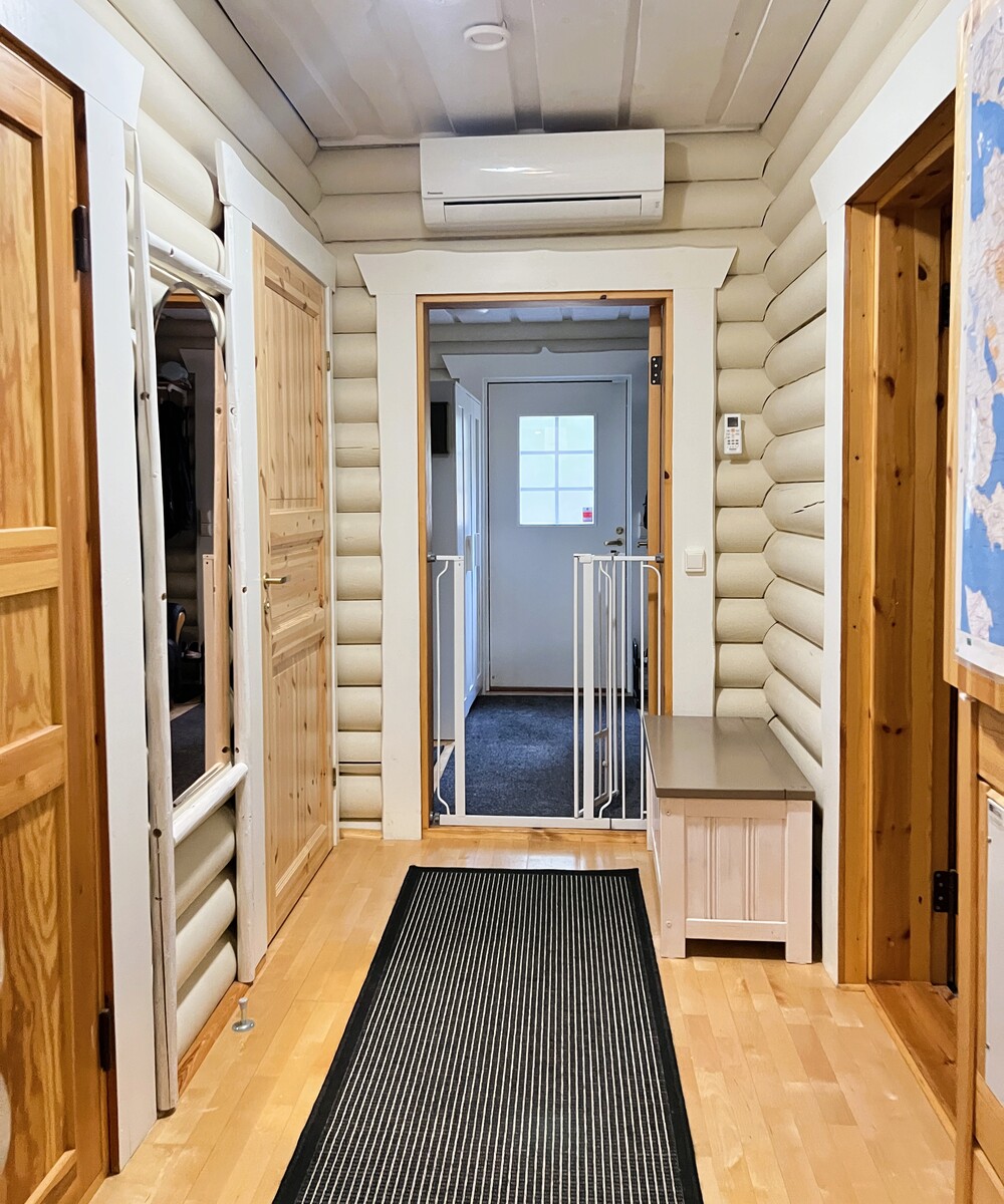 Rajakorventien varrella, kauniin mäntykankaan keskellä, sijaitsee jykevästä hirrestä rakennettu vuonna 1999 valmistunut omakotitalo. Tämä yksitasoinen koti tarjoaa tilaa 140 m², johon mahtuvat avara olohuone varaavalla takalla ja leivinuunilla, käytännöllinen keittiö saarekkeella, kaksi makuuhuonetta sekä sauna- ja kodinhoitotilat. Normaalia korkeampi huonekorkeus ja vaaleaksi maalatut hirsipinnat tekevät tunnelmasta ilmavan ja kodikkaan.