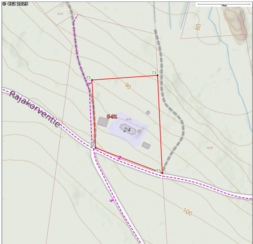 Kovapohjainen hiekka ja kiviperäinen maa. Mäntykangasta, mustikkavarvikkoa.