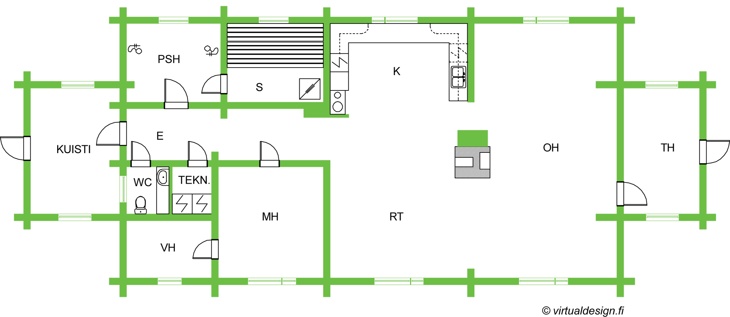 Lisäksi on puuhella ja puukiuas.