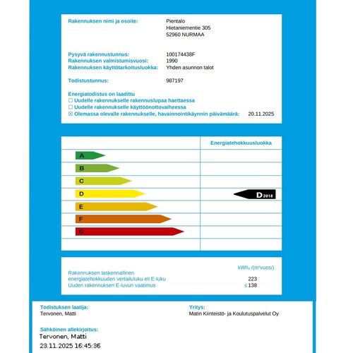 Puuhella, varaava takka sekä ilmalämpöpumppu lisäävät asumismukavuutta ja säästöjä lämmityskuluissa. Talon yleisilme on siisti ja huollettu; muun muassa ulko-ovet ja kodin koneita on uusittu viime vuosina